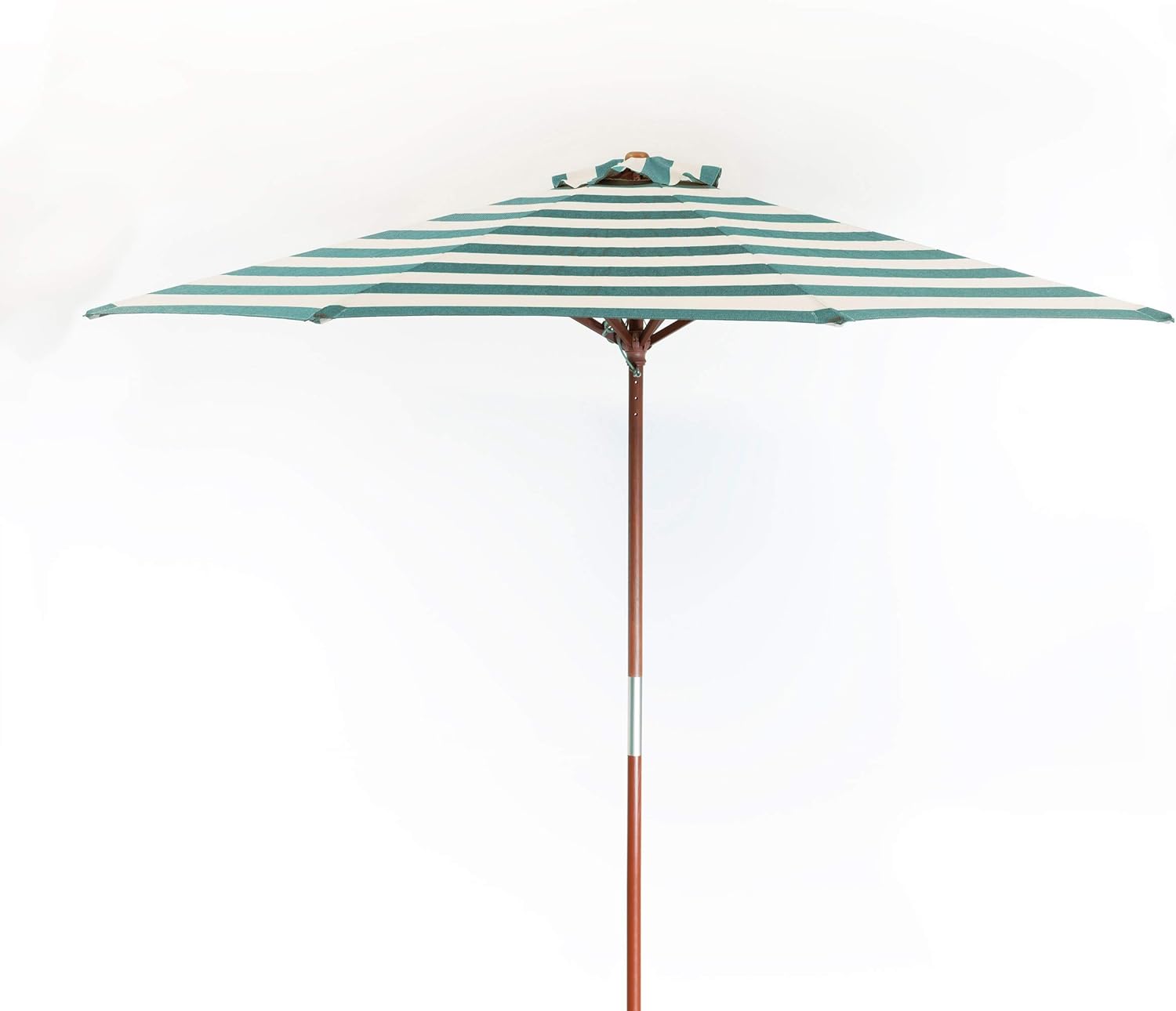 | Item Type Name | Heininger Classic Wood 9 ft Round Market Umbrella in Soft Teal and Ivory Stripe |
