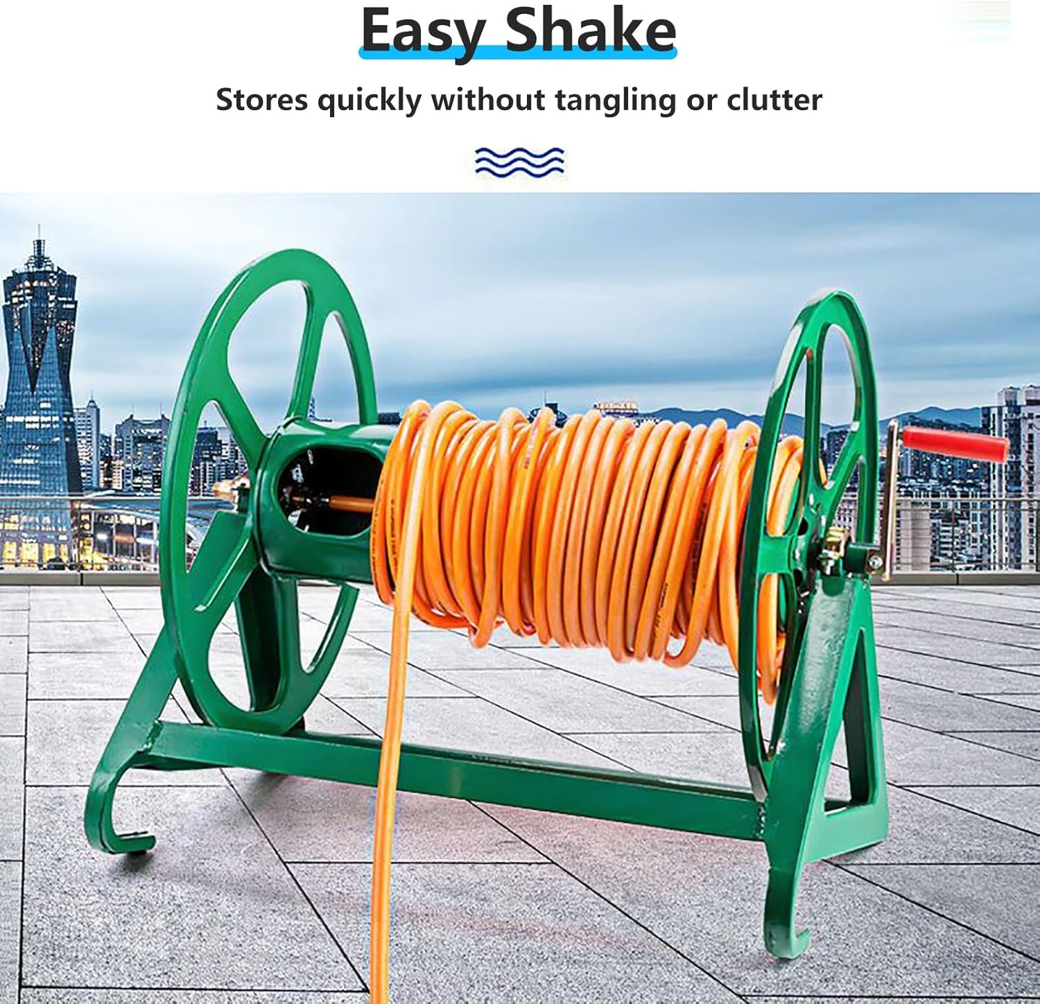Product SpecificationsProduct Name: Hose Reel / Garden Hose Storage Rack / Agricultural Hose ReelProduct Color: GreenProduct Dimensions: 52.5x38.5x52cm / 61.4x38.5x52cmProduct Material: Steel + PaintProduct Function: Portable / Vertical / HangingProduct Applications: Gardening, Car Washing, etc.Notes:1. Due to manual measurement, please allow 1-3 cm for measurement.2. Colors may vary slightly due to different monitor settings.3. If you have any questions, please feel free to contact us. We will respond as soon as possible.