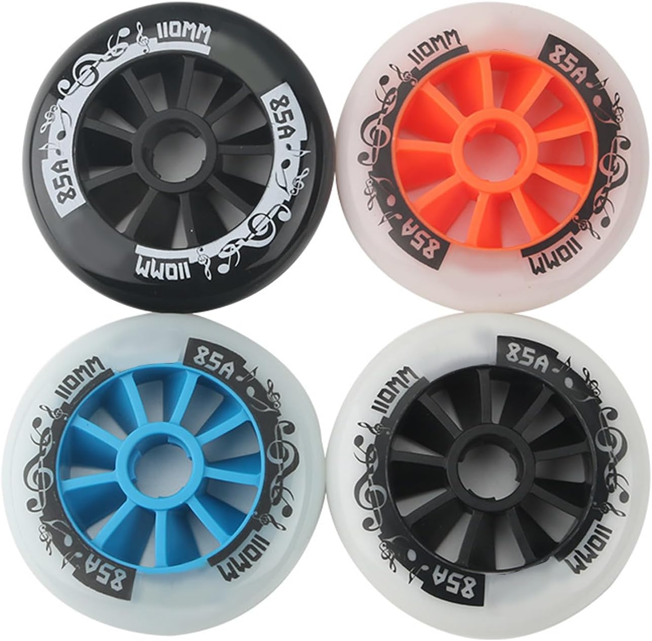 Accurate and stableSafe and wear-resistantdouble experiencePackage List: 8 x wheelsFeatures:Material: PUSpecifications: 90/100/110mmHardness: 85AWheel thickness: 24mmInner diameter: 22mmColor: orange white/blue white/black and white/blackGreat props to cultivate outdoor sports interests and improve yourself sports wheels.These wheels adopted superior PU, wear-resistant & solid. Designed with 85A hardness, offers durable use experience. Its high performance bearings ensure a smooth and comfortable ride.