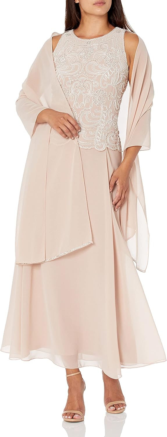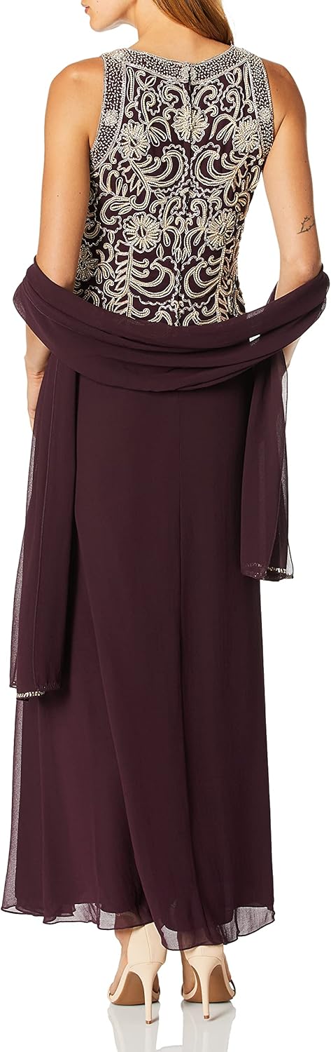 Sleeveless scallop edge detail long beaded top with matching scarf