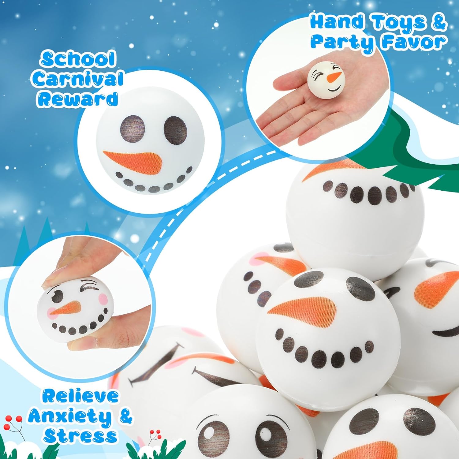 | Included Components | 60 x Snowman stress balls |