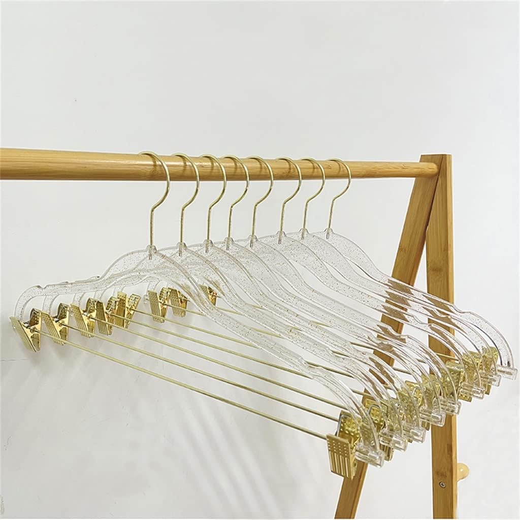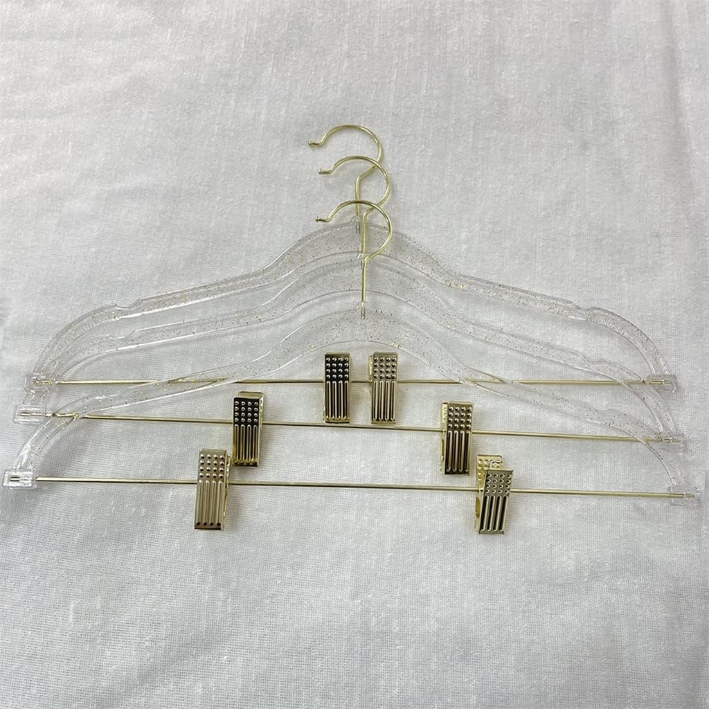 Feature1. Made of transparent gold powder plastic.2. Reliable non-slip grip.3. , strong and practical.4. Space-saving hangers are for hanging skirts, pants, etc.5. The clip can be adjusted freely, suitable for various sizes of clothes.Specificationmaterial: plasticSize: 45cmColor: transparentPackage Included:Pants rack*5(Excludes other accessory demos in pictures.)notes:Please allow 1-3cm error due to manual measurement.Due to different computer screens and display , actual colors may differ slightly from the pictures.Thanks for your understanding!The clip can be adjusted freely, suitable for various sizes of clothes.