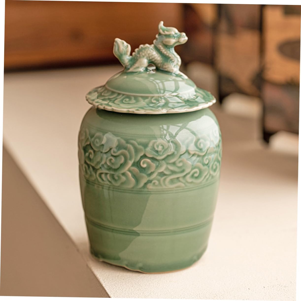 Package Include 1 x storage jar Features -Material:Ceramic Ceramic Canister -Color:Green Tea Storage Can - Capacity: 500ml airtight tea canister -Size:17.00X9.80X9.80cm/6.68X3.85X3.85in mini ceramic canister - Ideal container for your loose-leaf tea, tea bags, and anything else you need to keep airtight tea canisters. - With careful polishing process, the ceramic jar has a smooth surface with good gloss storage jar canister. - Manufactured of safe ceramic material, this storage jar can be used for a long period of time storage canister. - The simple and retro shape design, favored by many people, make the tea jar very delicate and unique ceramic kitchen storage jar. - The lid of the Tea Jar has a good sealing function, which can gather flavor and lock tea fragrance tea bag canister.Goods Descriptionloose leaf tea canister This is a ceramic storage jar with a lid, designed with retro patterns, multipurpose and practical.mini ceramic canister It can be used to hold candies, mints, chocolate, coffee, crafts, jewelry, tea leaves or some other items you would like to fill