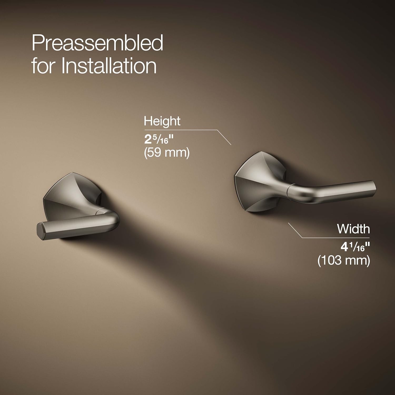 Unapologetically luxurious and truly unforgettable, KOHLER Occasion bathroom sink faucets and accessories draw inspiration from 1960s Hollywood glamour and extravagance. Fashioned after the era’s sleek dress lines and bold car designs, the Occasion collection reflects graceful elegance, blending classic midcentury and modern design. Customize your bath with the collection’s distinctive pentagonal accents, faceted bases, flowing lines, and delicate edges. Choose a spout, handles, and finish to build your own signature design. Pair these elegant, minimalist wall-mount sink faucet trim lever handles with the Occasion wall-mount bathroom sink faucet spout for a look as fashionable as it is functional. Valve sold separately.