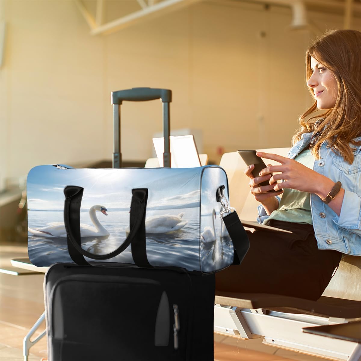 Large capacity: Womens weekend duffel bag measures 17.4 x 8.3 x 9.5 inches (approximately 44 x 21 x 24 cm), meeting most airline carry-on requirements. Despite its compact size, the spacious main compartment easily accommodates gym clothes, sports shoes, and overnight essentials. Three built-in pockets keep your phone, passport, and snacks neatly organized and within easy reach.Lightweight Waterproof: Lightweight duffel bags for traveling is crafted from premium waterproof composite twill fabric, offering a lightweight yet robust construction. Its exceptional waterproofing ensures contents remain dry, complemented by smooth-running heavy-duty metal zips for enduring reliability.Foldable Storage: When not in use, this foldable duffel bag for travel can be folded and stored in drawers, storage cabinets, or suitcases. It serves as an ideal backup bag for handling last-minute trips, extra shopping, or additional storage needs.Versatile Carrying Options: Duffel bags for traveling has comfortable handles and a detachable, adjustable shoulder strap, letting you choose your carry style freely. Its dedicated luggage strap securely attaches to your suitcase’s telescopic handle, freeing your hands and easing airport transfers and daily commutes.Versatile: This multifunctional sports duffel bags effortlessly adapts to diverse scenarios—be it gym sessions, travel, overnight stays, beach outings, or cabin luggage. Whether for daily workouts, weekend getaways, or outdoor adventures, it proves a dependable companion. Thoughtful Gift: Standing out from ordinary designs, this duffel bag women offers distinctive style. Beyond being a practical everyday accessory, it makes an excellent present for friends, family, colleagues or team members. Whether for birthdays, holidays or team events, it's a much-appreciated gesture.