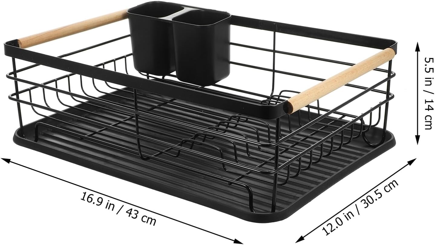 Package Include 1 × dish drying rack Characteristics -Material: iron, PP and wood -Size:43.00X30.50X14.00cm/16.90X11.99X5.50in -Color:Black -Product Info:Kitchen dish drain rack - Equipped with a cutlery holder, can store cutlery better, owning better classification and organization effect dish drainers. - Multifunctional, the dish drying rack can be used to store tableware, pot lid and chopsticks, also can be as a draining rack counter top dish drainer rack. - Humanized design can keep your kitchen counter clean and dry, save your time to clean dish racks for kitchen counter. - Store the dishes, cups, and cutlery after washing, a practical accessory for your kitchen and bring you convenience dish rack drainer. - Using safe materials, sturdy and rustproof, the drying rack for dishes .Goods Informationmug drying rack This dish drying rack uses material, can keep things neat and tidy.dish dryer , bring you much more convenience and satisfying using feeling.kitchen racks Large capacity, the bowl dish drying rack is very suitable for storing and draining bowls, plates, chopsticks, etc