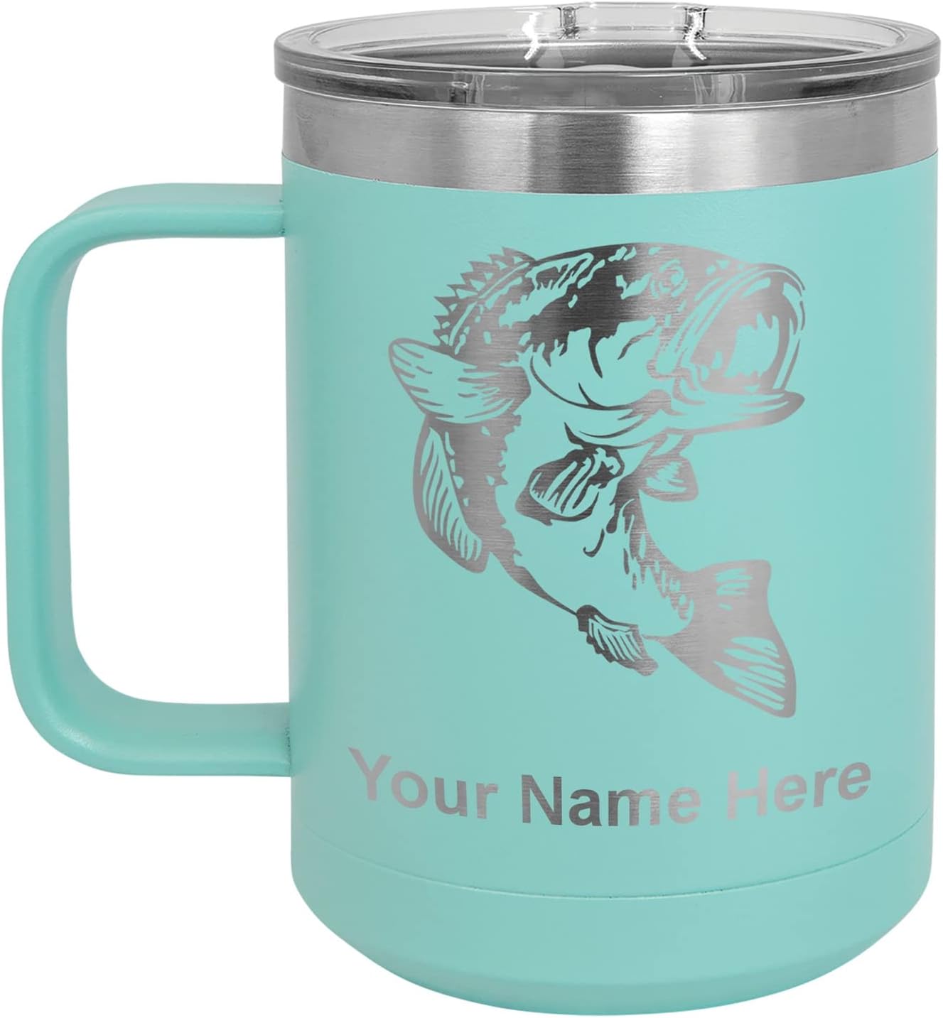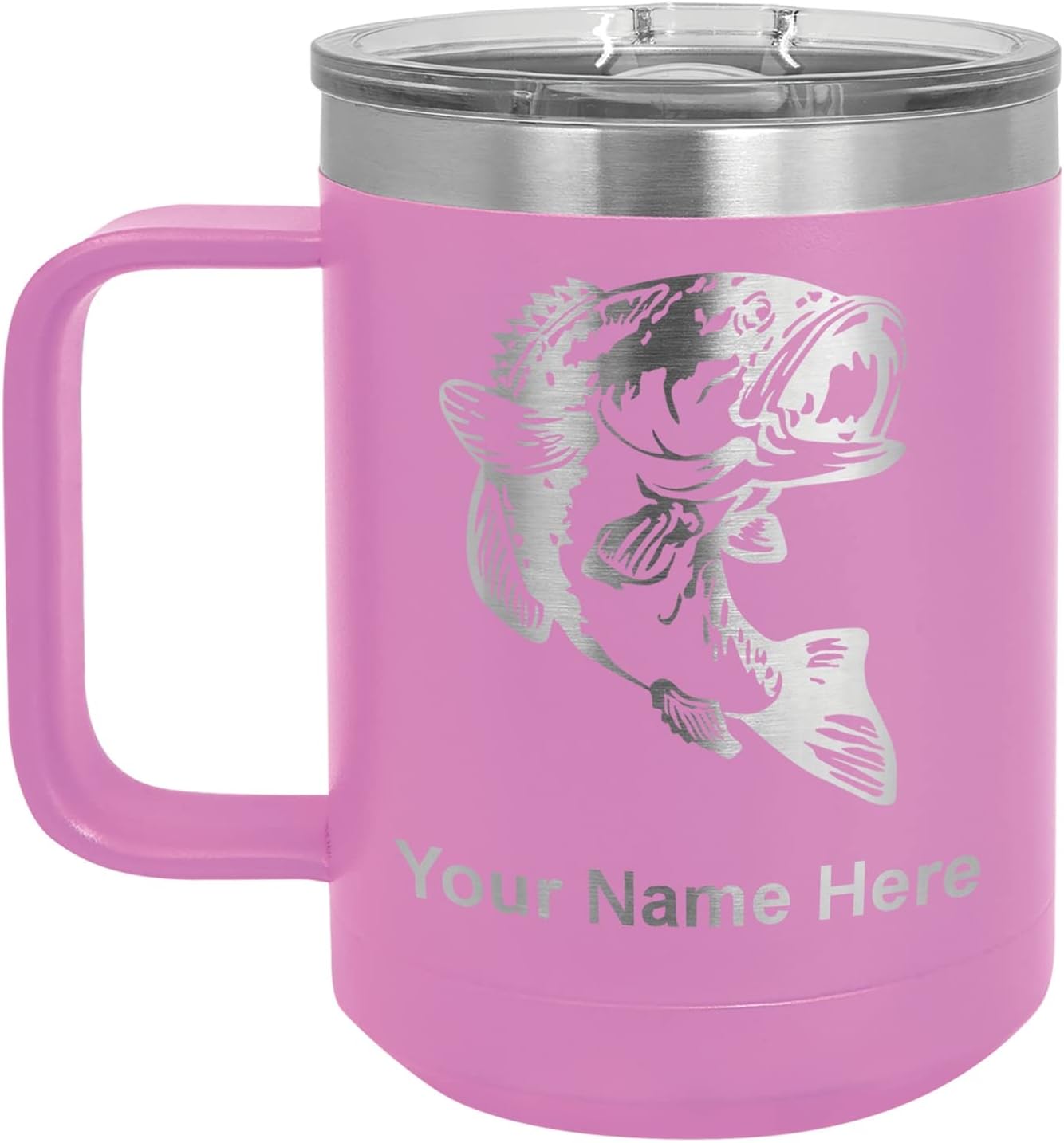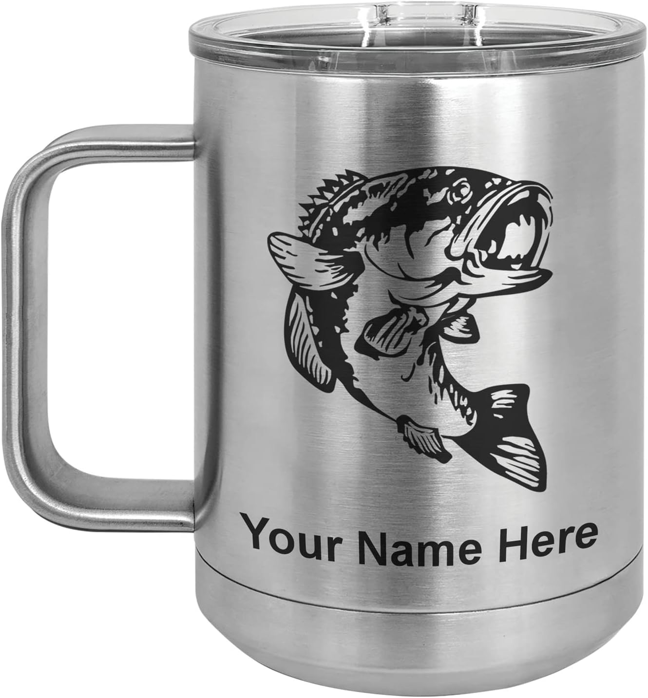 LaserGram 40 ounce Travel Mug with Handle that is laser engraved with the image that you see in the photo. Your own personalized text will be laser engraved below the image. Features double-walled stainless steel vacuum insulation with a clear lid. Click the "Customize Now" button to begin customizing your mug.