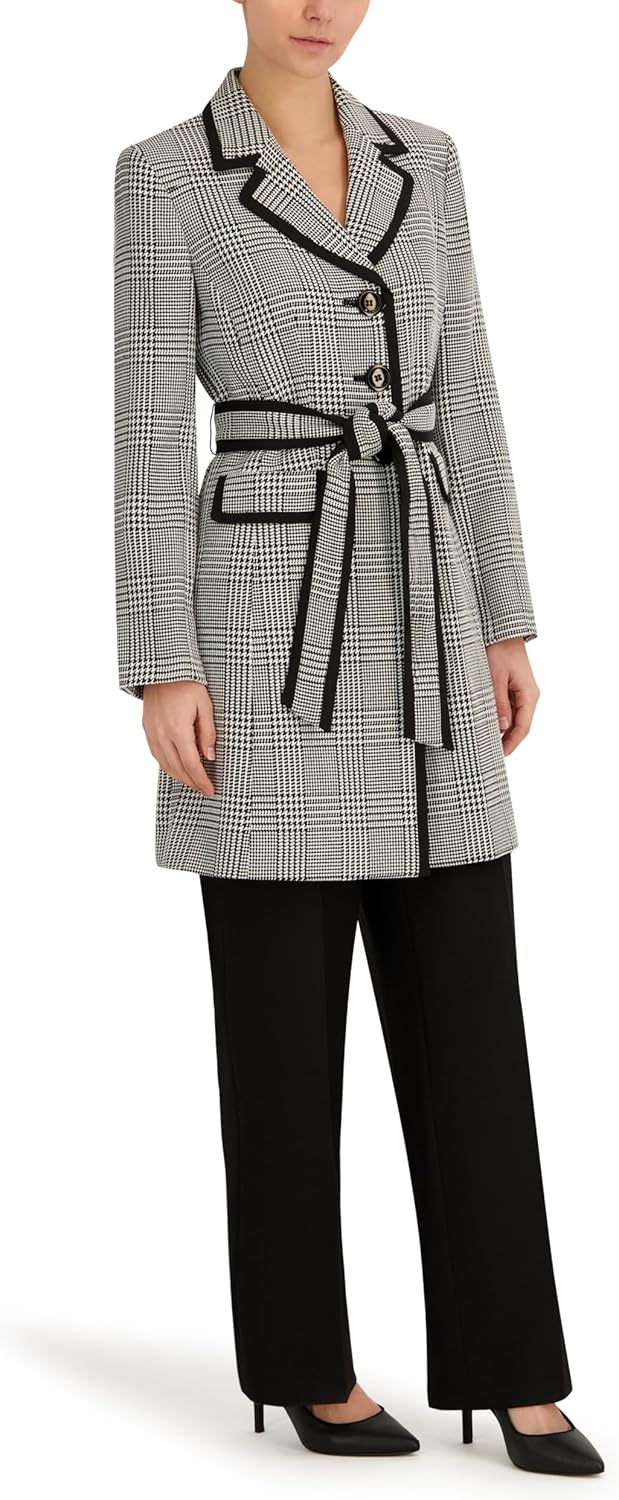 | Style Name | Le Suit Petite Houndstooth Plaid Framed Trench & Wide Leg Pant, Black/White, 6p |