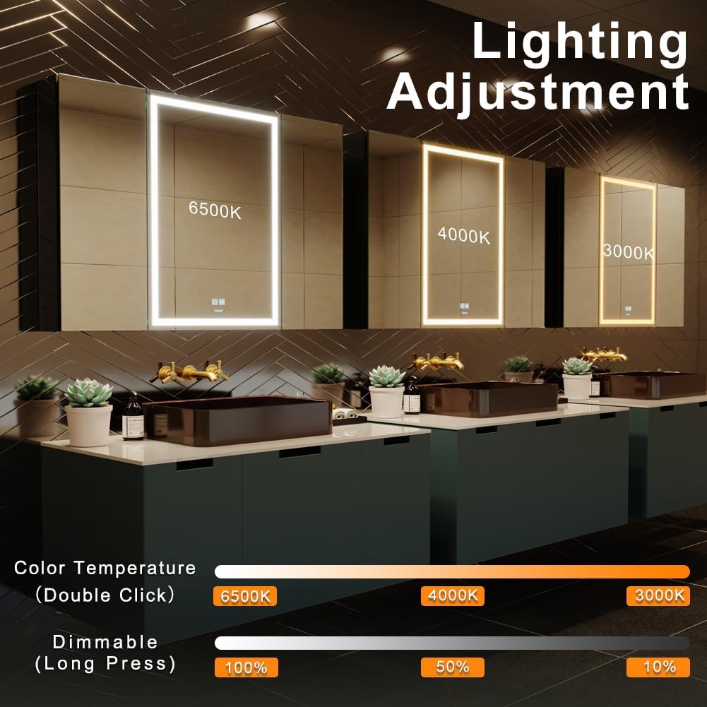 | Additional Features | Dimmable,Antirust , Anti fog,Mute, Tri-color dimming, Bottom light, easy to install, large space-7gal, sockets & USBs |