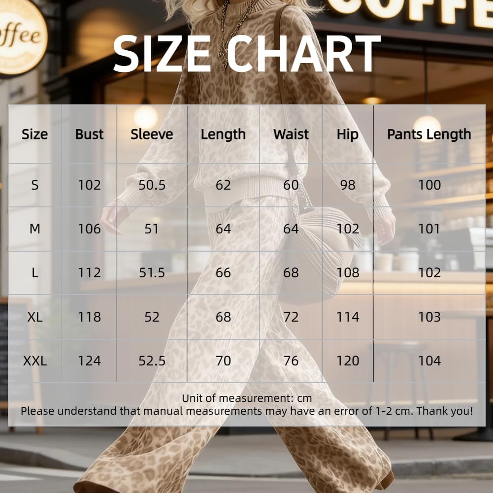 Leopard Sweat Set Womens Leopard Sweatsuits 2 Piece Sets Leopard Casual Loungewear Set Soft Plush Lounge Outfit For Travel For Women Features: Trendy Leopard Print 2-Piece Set for Effortless Everyday Style Relaxed Sweatshirt Fit with Mock or Round Neck for Easy Layering Straight-Leg Sweatpants with Elastic Waist for All-Day Comfort Soft, Breathable Fabric That Feels Warm Without Overheating Flattering Lounge Set That Moves Easily from Home to Street Perfect for Lounging, Travel, Errands & Casual Outings Specifications: Name: Leopard 2 Piece Sets Material: Polyester Fit: Loose fit Neckline: Round neck Style: Casual Weight: 700g Size: S M L XL XXL 3XL Package Includes: 1Pc * Leopard 2 Piece Sets Note: 1.Due to manual measurement, please allow a difference of 1-5g/1-2cm. 2.Due to different displays and different lighting, the picture may not reflect the actual color of the item. Thank you for your understanding.