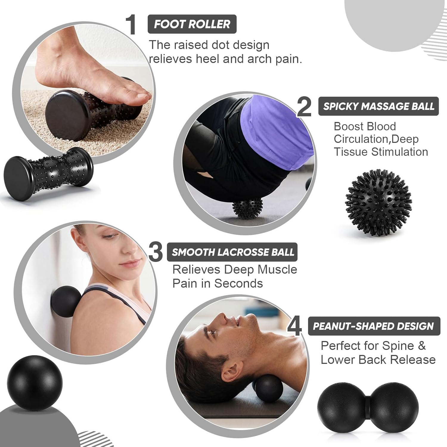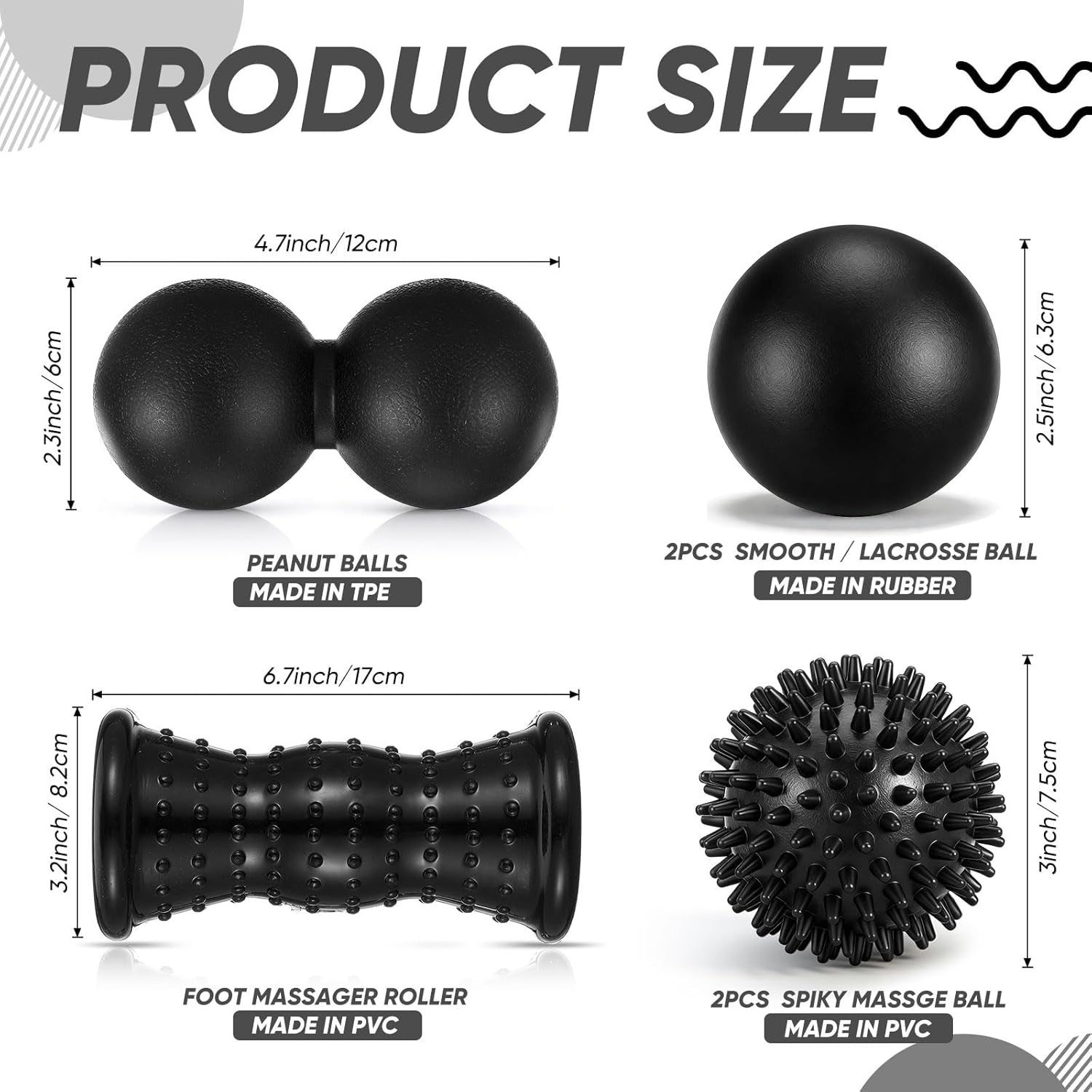 Features: This massage ball set is a thoughtful gift to express your love to your loved one, effectively relieving plantar fasciitis and pain in other parts of the body. This massage ball comes in various styles, and the spiked design allows for precise stimulation of acupressure points, penetrating deep into the muscle tissue to break down fascial adhesions, effectively relieving post-exercise muscle stiffness and strain, improving blood circulation, and providing overall body relaxation. Specifications: Material: silicone Color: black Size: about 2.95 inches/ 7.5 cm Package includes: 6 X Massage ball Notes: Manual measurement, please allow slight errors on size. The color may exist a slight difference due to different screen displays