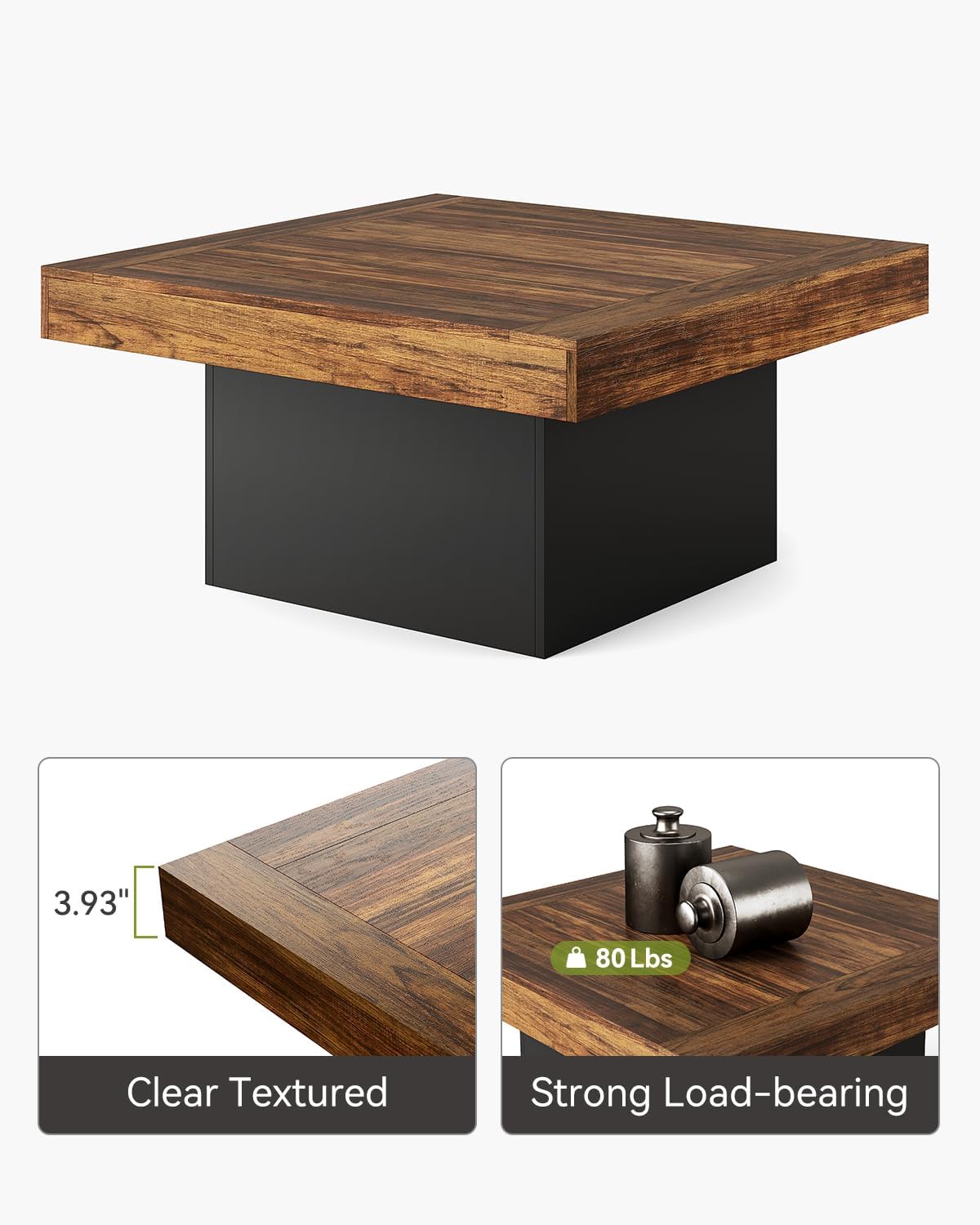 | Model Name | Farmhouse Coffee Table Square LED Coffee Table Engineered Wood Coffee Table for Living Room Rustic Brown & Black Low Coffee Table |