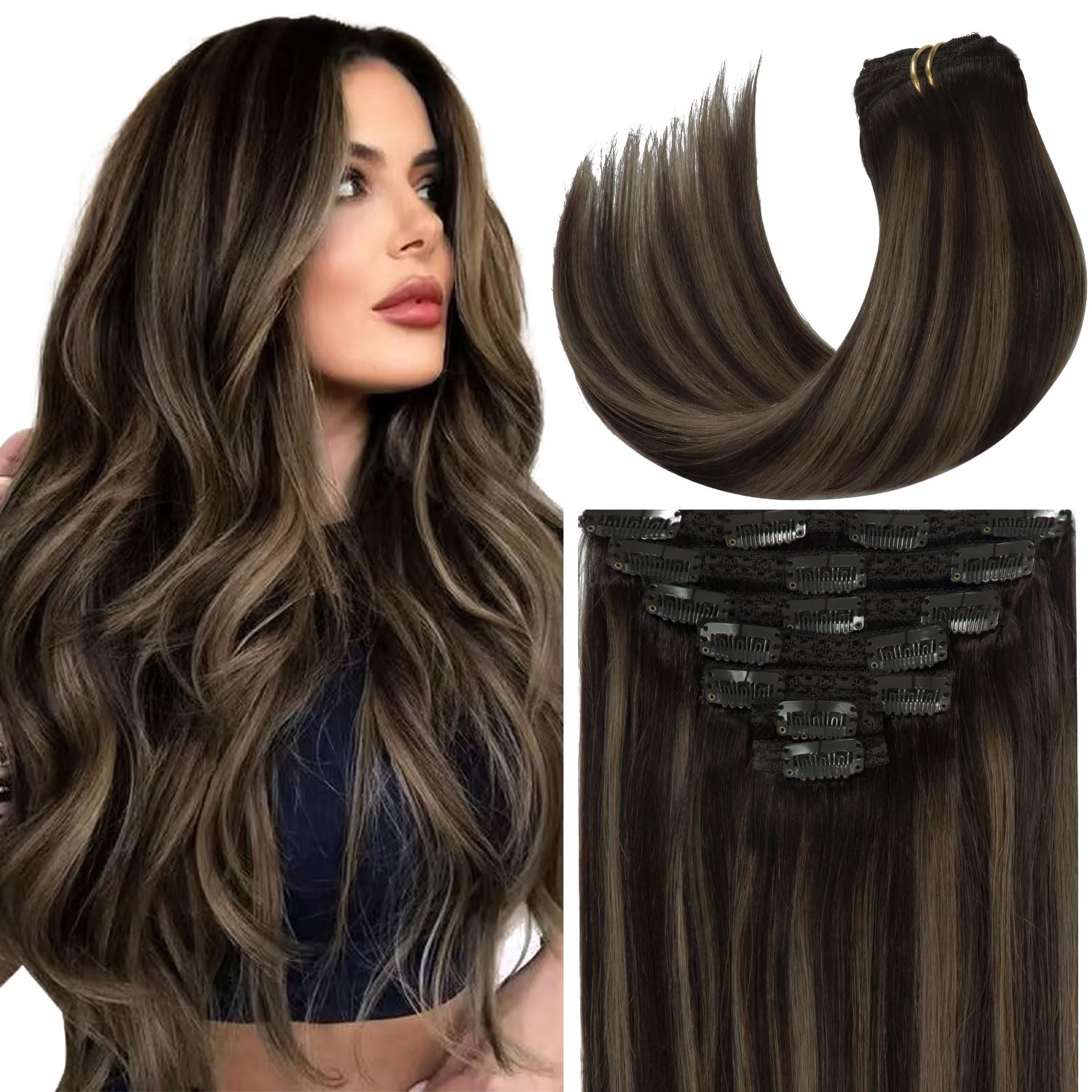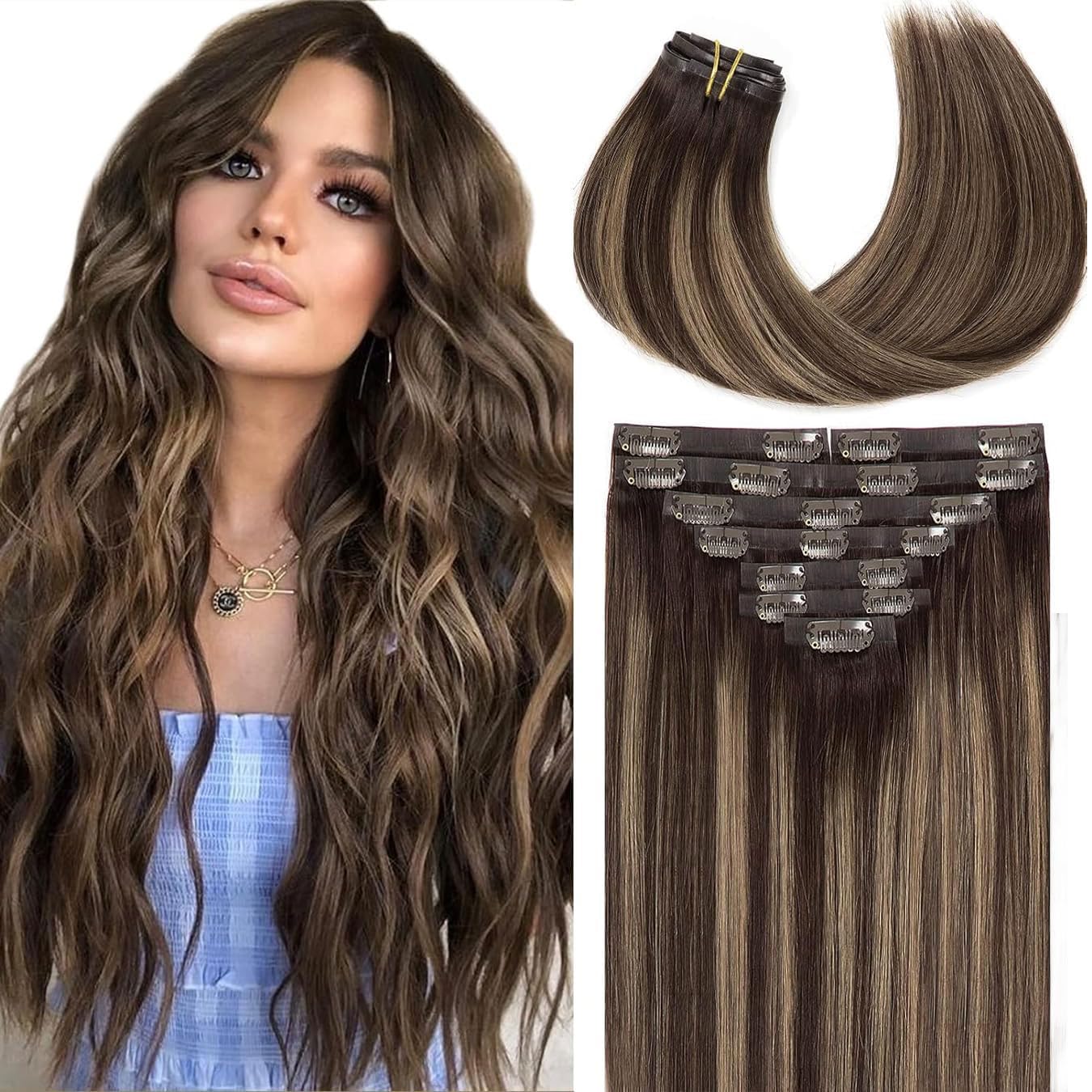 | Color | #R4-4/27 Chocolate Brown to Caramel Blonde with Brown Roots |