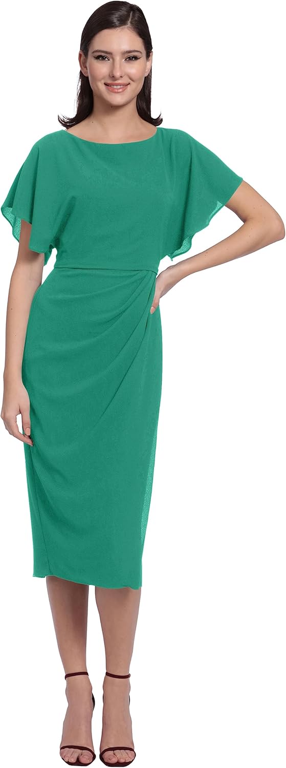 Maggy London Women's Dresses Boat Neck Flutter Sleeve Dress Occasion Event Guest of