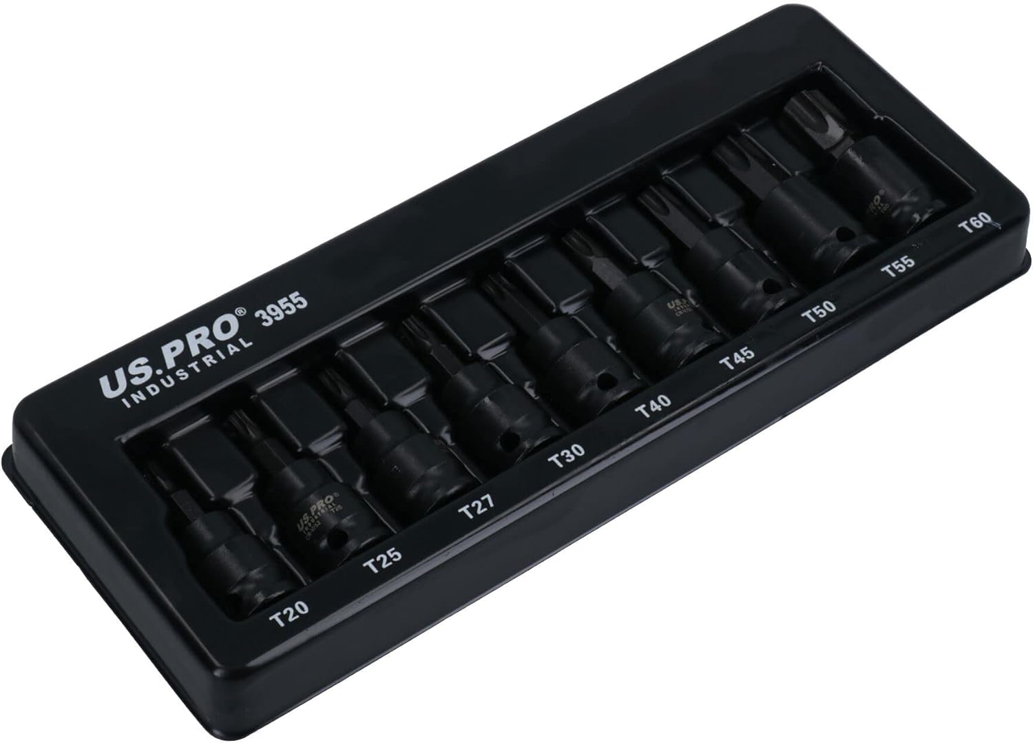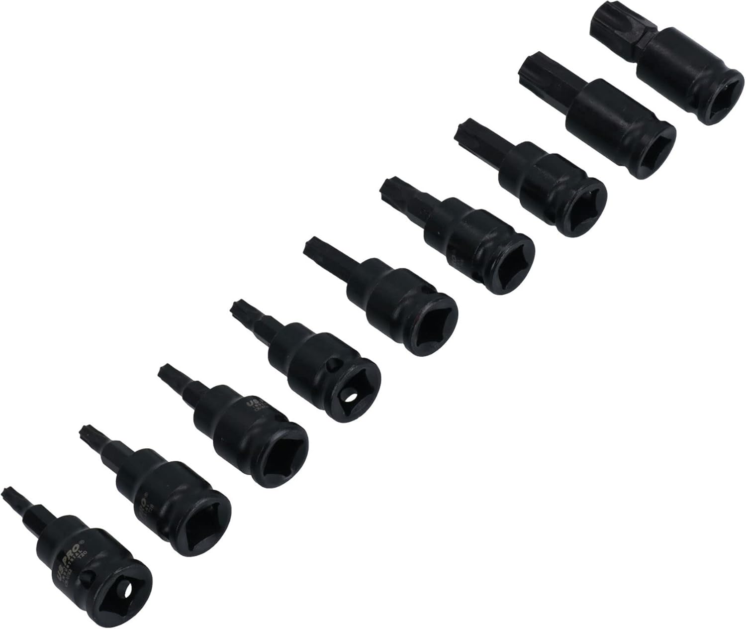 Professional impacted TORX / STAR keys for commercial or occasional use Industrial metric torx / star key sockets Male torx bit impacted sockets Torx Star keys ranging from T20 – T60 Manufactured From CR-v S2 bit for maximum strength and durability 3/8in drive so will fit any 3/8in drive ratchets, extension bars, impact guns etc... Impacted torx bits so will with stand high torque tools such as impact guns Stubby torx / star key bits for access in tight restricted areas Total length of the sockets 45mm Comes in a plastic size marked tray for easy storage and transportation European style torx / star keysSET INCLUDES THE FOLLOWING SIZES T20, T25, T27, T30, T40, T45, T50, T55 and T60