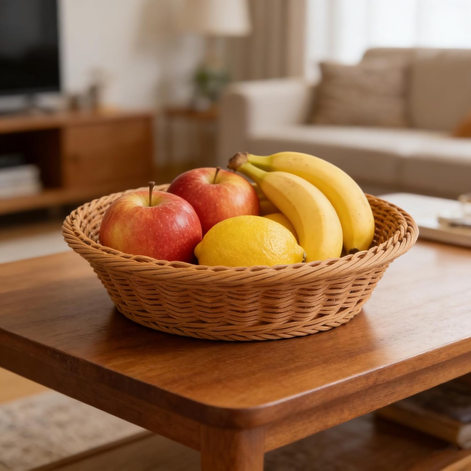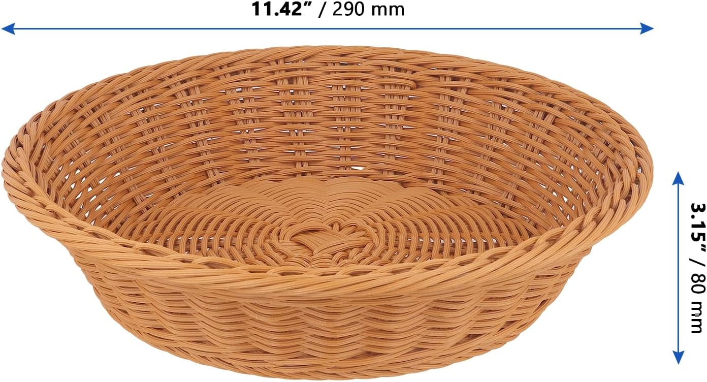 Material: Plastic Color: Brown Size: 11.4 x 3.1 inch Quantity: 6 x round wicker bread basket