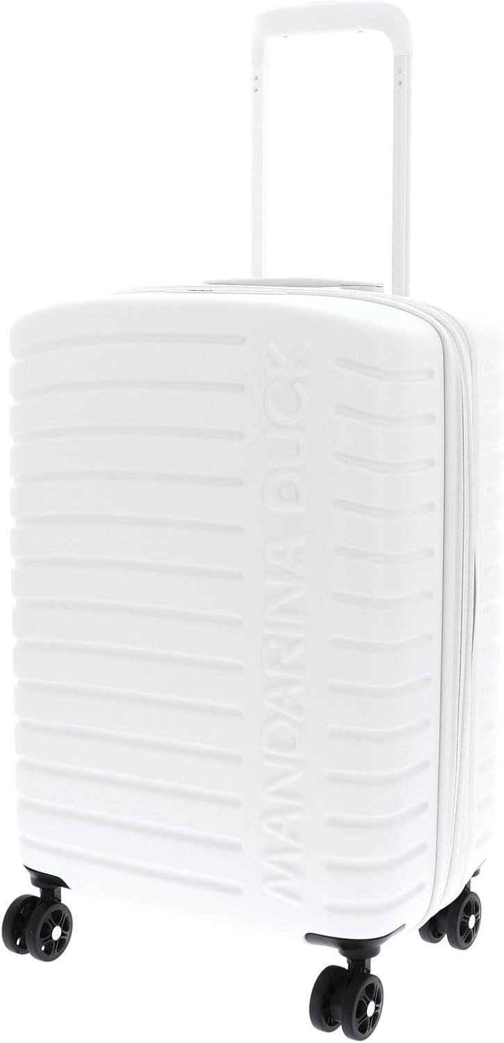 Nuova linea superleggera in policarbonato di Mandarina Duck. Il design è essential e contemporaneo e presenta l'iconica texture "MD Diamond" with maxi logo on the front. Le ruote sono doppie e il TSA integrato.