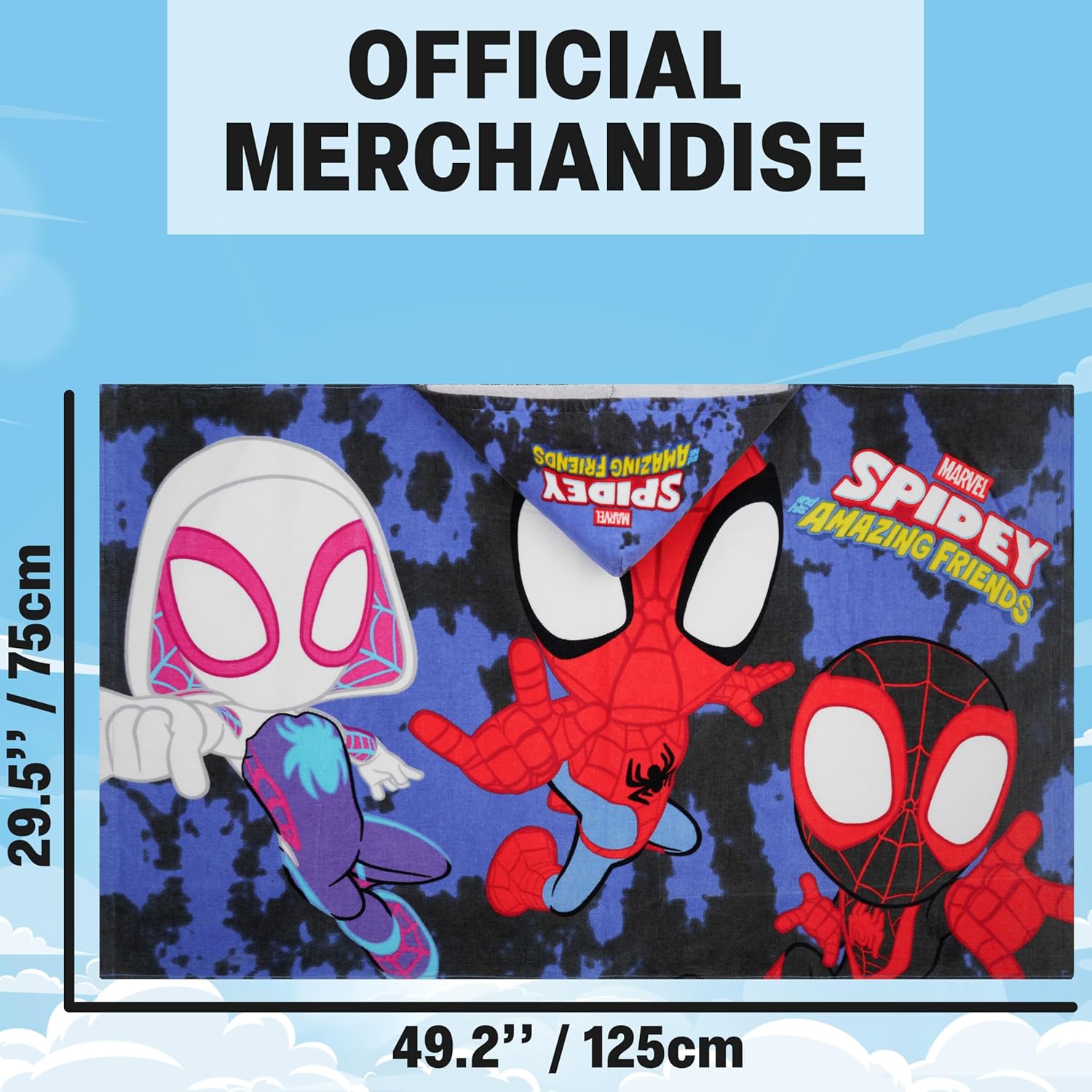 | Other Special Features of the Product | Compact, Breathable & Lightweight Hooded Towel for Boys - Machine Washable, Durable & Easy-Care Fabric, Cosy, Ultra-Absorbent & Soft Cotton Fabric with Comfortable Hood, Eye-Catching Spidey and His Amazing Friends-Themed Design Towel Poncho - Marvel Merchandise, Practical, Stylish & Multi-Functional Towel Poncho - Ideal for Home, Travel, Pool, Beach & Swim, Vibrant, Trendy & Bold Graphics Featuring Spidey and His Amazing Friends Characters |