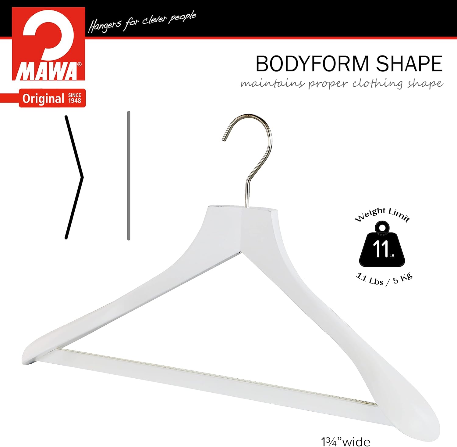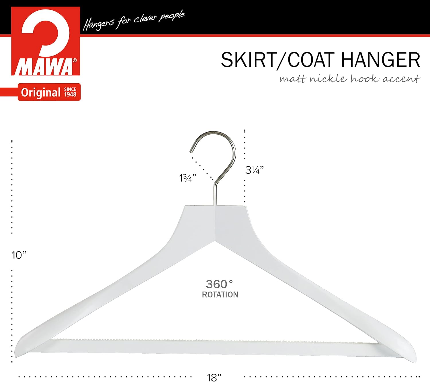 Discover the perfect combination of quality, functionality and sustainability with our FSC-certified wooden hangers including a 360° rotatable hook. From New York, London, Paris, Frankfurt, Shanghai to Tokyo - those who love the lifestyle of a metropolis will also love these MAWA clothes hangers. In a self-confident, urbane language of form. The perfect coat hangers for the woman and man of the world. MAWA has been producing clothing hangers in Bavaria since 1948. Don't get fooled by Chinese copies, Lotus or Bamboo wood is not as strong and can splinter. Thanks to our German-craftsmanship and 4-fold gridding process each wooden hanger is extra smooth. As part of the current MAWA Best of Wood series, the MAWA Profi wooden hanger is now available in black or white finish with your choice of shiny gold or matt silver hardware. With our water-based, environmentally friendly lacquer finish, the MAWA Profi wooden hanger embodies the style of elegant city apartments in international metropolises. As a woman / man of the world, you will love the self-confident and urbane design language of this clothes hanger.