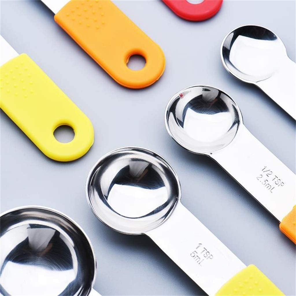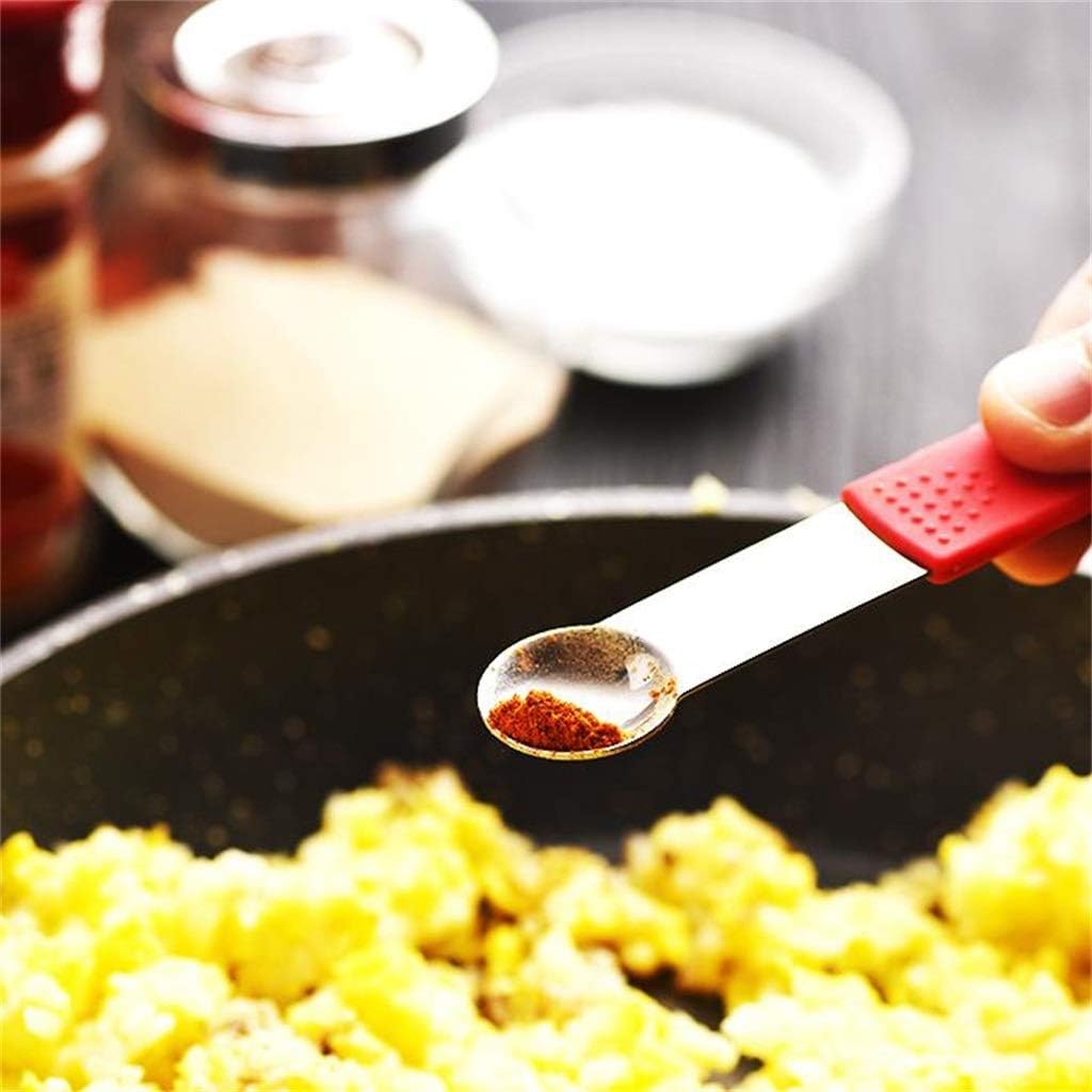 Name: Measuring spoonMaterial: Stainless steelWeight: 150gSpecifications: four sets (1.25ml, 2.5ml, 5ml, 15ml)Advantages: stainless steel anti-corrosion and anti-rust, clear scale, silicone handle, heat insulation