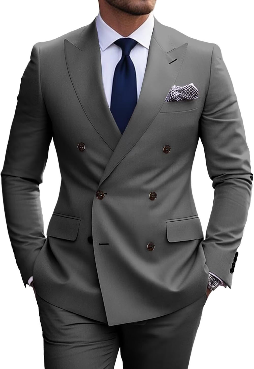Mens Suits Slim Fit 2 Piece Wedding Tuxedo Suit Set Men Formal Business Suits Blazer Vest Pants ● Fabric: 80%Polyester+20%Viscose. ● Design: Blazer: Peak lapel collar, 3 functional pockets; Vest: Double-breasted, V-neck, adjustable back strap; Pants: Zipper closure, 2 angled slash pockets, elastic waist. ● Wash Instruction: Dry cleaning only/Do not bleach/Steam ironing availableIMPORTANT TIPS About Size ● Our Suit Size: XS, S, M, L, XL, 2XL, 3XL, 4XL, 5XL, 6XL. ● PLEASE NOT look at the Amazon size chart. Please contact us via amazon if you need customized, then send us all measurements that listed Below(The measurement guide pictures are in the left picture of the product) ● Customized Size (Units CM or Inches): A: Chest circ. B:Shoulder circ. C.waist circ. D:hip circ. E:pants outside length. F: Inseams. G:Height. H:Weight=_kg or poundsEasy to match, suitable for many occasions: ● Still struggling to find a formal suit set? This 3-piece men's suit set has the answer! Meticulously tailored with exquisite design, it offers comfortable wear and showcases your exceptional style, sure to receive many compliments!