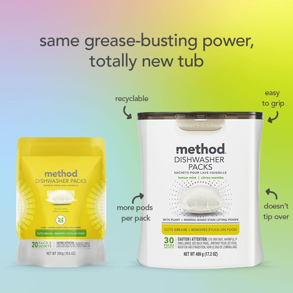 Grimy glasses and dirty dishes are no match for the plant and mineral-based stain lifting power in our dishwasher packs. Free of phosphates and chlorine bleach, these powerful little pillows cut through grease and laugh in the face of stuck-on leftovers, leaving dishes sparkling and squeaky clean.