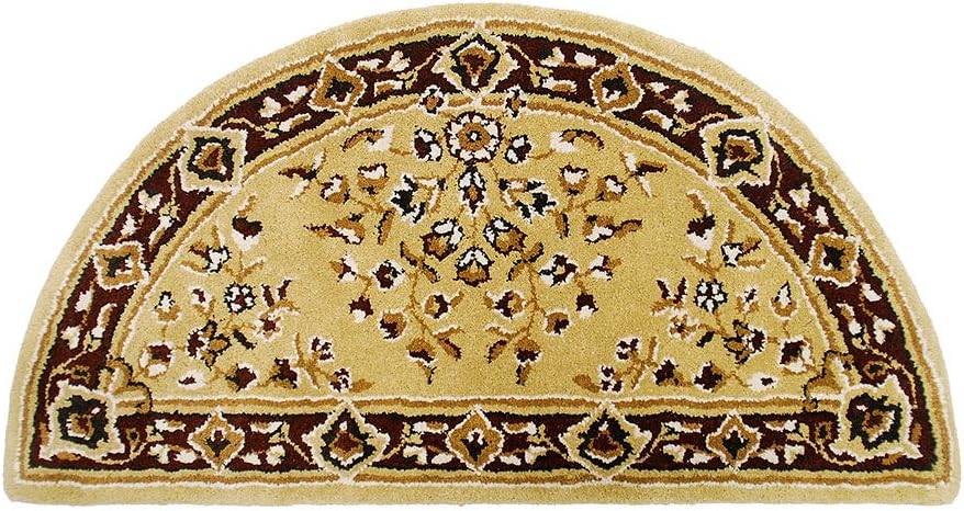 These hearth rugs are inspired by traditional Persian designs. They have five borders and floral medallions in the center. We offer them in rectangles and half rounds, in blue, beige and burgundy. Hearth rugs protect your floor and will add beauty and warmth to your fireplace. They can also be used as door mats or as occasional rugs throughout your house. (For indoor use only). All our hearth rugs are woven from the highest quality 100-percent virgin wool and dyed in rich saturated colors. They are fire resistant and meet federal requirements for surface flammability of small carpets (Part 1631 - FF2-70). Warning: your pets will probably make a bee-line for these rugs so they can bask in the warmth of the fire!