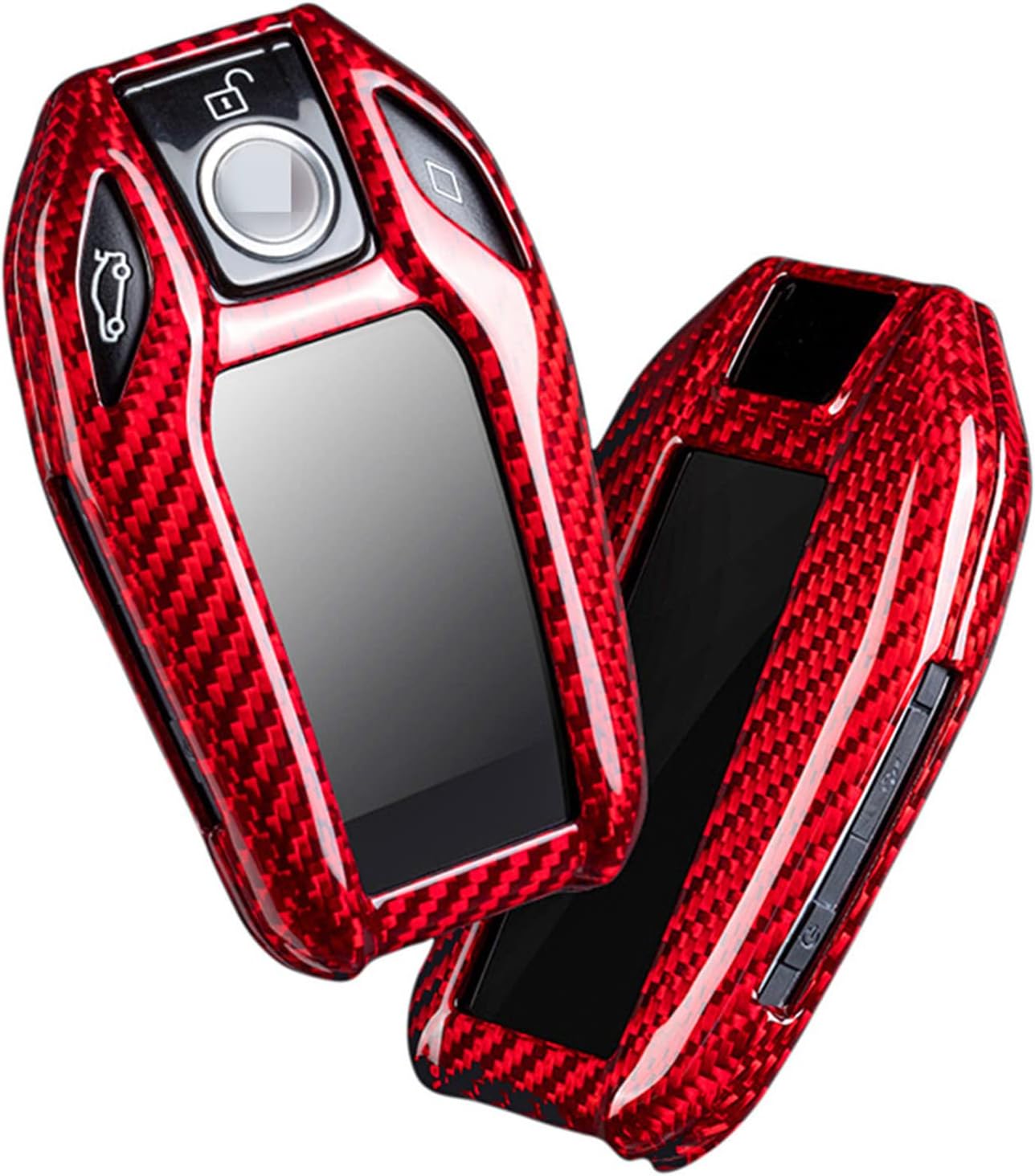 MUST READ:1. PLEASE MAKE SURE TO CHECK YOUR KEY BEFORE PURCHASE Your original key shape must be looked the same as our key shell (second gallery image), otherwise it can NOT fit. Please check the size and shape carefully to ensure you get the right key shell. 2. If your car will not start using the "ENGINE START STOP" button unless the key is pushed into the ignition hole, the case can NOT fit for your key.3. Item color displayed in photos may be showing slightly different on your computer monitor or cell phone screen since monitors are not calibrated same.Compatibility:For BMW LCD Screen Key Fob For BMW i8 For BMW New 7-Series: For BMW 730Li For BMW 740Li For BMW 750Li xDrive M For BMW M760Li xDrive For BMW New 6-Series GT:For BMW 640i GT xDrive M For BMW New 5-Series: For BMW 530Le For BMW New X3:For BMW X3 xDrive 30ietc. Description: ---Brand new and high quality. ---As a perfect gift for yourself, lover, family and friends. ---Beautifully designed for any occasion.---Quantity: 1pc (remote key fob does NOT be included)---Material: Genuine Carbon Fiber---Colors: Black and Red---Category: Car Key Fob Cover