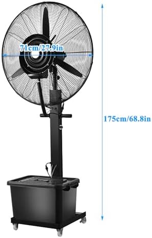 This industrial misting fan is expertly engineered for high-speed cooling in patios, warehouses, and commercial spaces. With a robust 71/81 cm pedestal design, it features a wide-angle oscillation function, ensuring even air distribution across expansive areas. The misting capability of this fan provides an additional layer of cooling, making it ideal for hot summer days. Three individual airflow settings allow you to customize the cooling experience to suit your environment, ensuring that refreshing air reaches every corner of your space. The fan's sleek black base not only adds a touch of elegance but also guarantees durability for long-term use. Technical Specifications: - Product Type: Mist Fan - Water Tank Capacity: 42 L - Power: 260 W / 350 W - Mist Area Coverage: 25-40 square meters; 40-60 square meters This versatile misting fan is perfect for various settings: - **Restaurants**: Enhance outdoor dining experiences in beer gardens and hotel terraces. - **Commercial Spaces**: Keep transport hubs, shopping streets, and equestrian centers cool and comfortable. - **Leisure Activities**: Enjoy relaxing by the pool, garden parties, or cricket matches without the heat. Please note that manual measurements may result in slight variations of 1 to 3 cm. Always refer to the actual product for precise specifications. Upgrade your cooling solutions with this efficient mist fan, designed to maximize comfort in any environment.