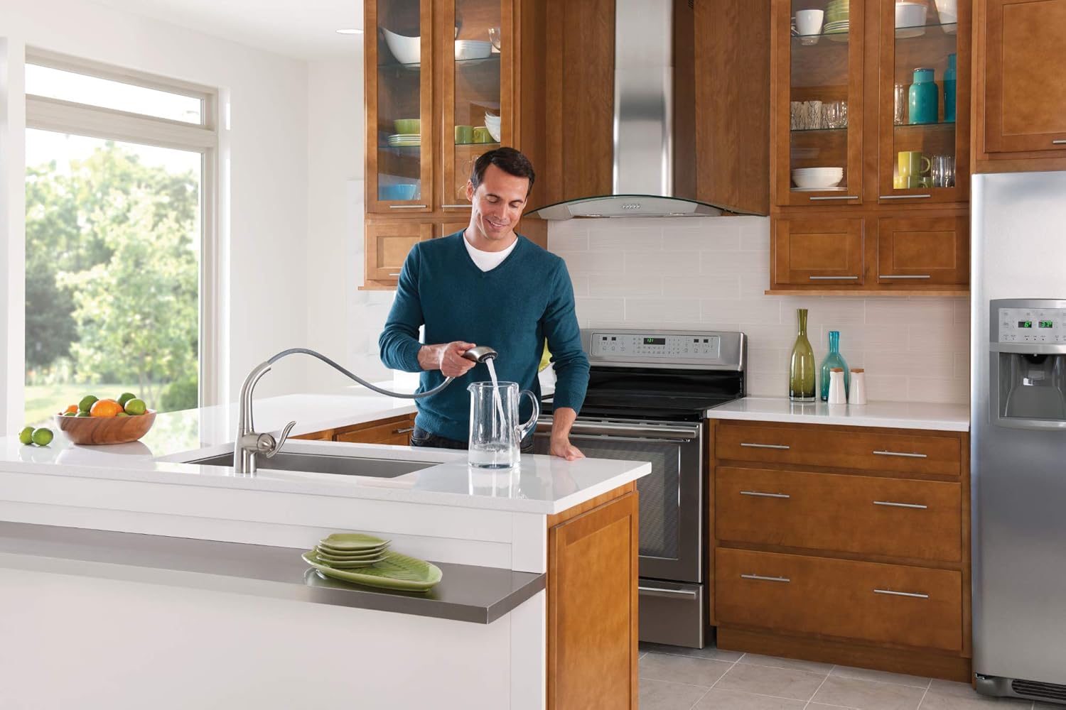 Product Description Add a distinctive touch to your kitchen with the Moen Arbor Pullout Kitchen Faucet. Showcasing an elegant flared design that complements both traditional and contemporary spaces, this faucet offers a single handle for straightforward operation, two spray options for convenience, and a pause function to help conserve water. Thanks to Moen's Duralock Quick Connect system, this kitchen faucet installs easily on most one or three hole mount sink or countertop, while the Duralast 1255 cartridge helps ensure long-term reliability. The Arbor Pullout Kitchen Faucet is available in four luxurious finishes and is backed by Moen's Limited Lifetime Warranty. Arbor's smooth profile is tailored to perfection. The slight flare of the handle and the curve of the spout make this a transitional look that works with a variety of decorating styles. From the Manufacturer The Arbor line delivers streamlined and timeless transitional styling that meets personal preferences and houses a host of performance features that make Arbor extremely flexible and friendly to use.