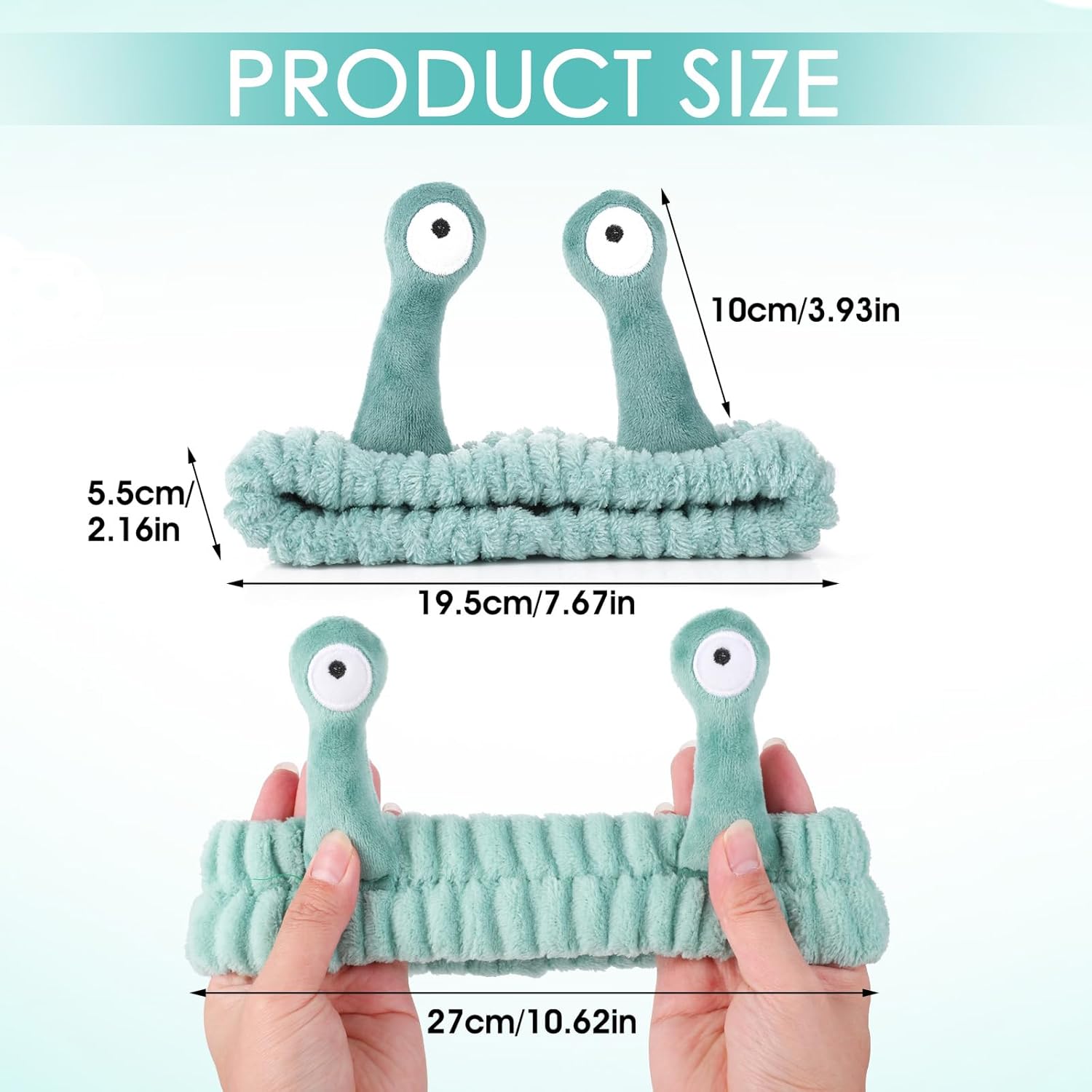 Category: Face washing headbandColor: Yellow/Black/Pink/Bean Green/Khaki/Gray/Sky Blue/Red/Beige Green/Korean Pink GrayMaterial: FlannelFeatures: Helps to wear during spa, exercise, yoga, face washing, bathing, makeup, work, reading, etc.Product size: 7.6 x 6.04 x 0.58 inches/19.5 x 15.5 x 1.5 cm (eye length 10cm headband diameter 19.5cm width 5.5cm stretch up to 27cm)Packing list: 14pcs × headband