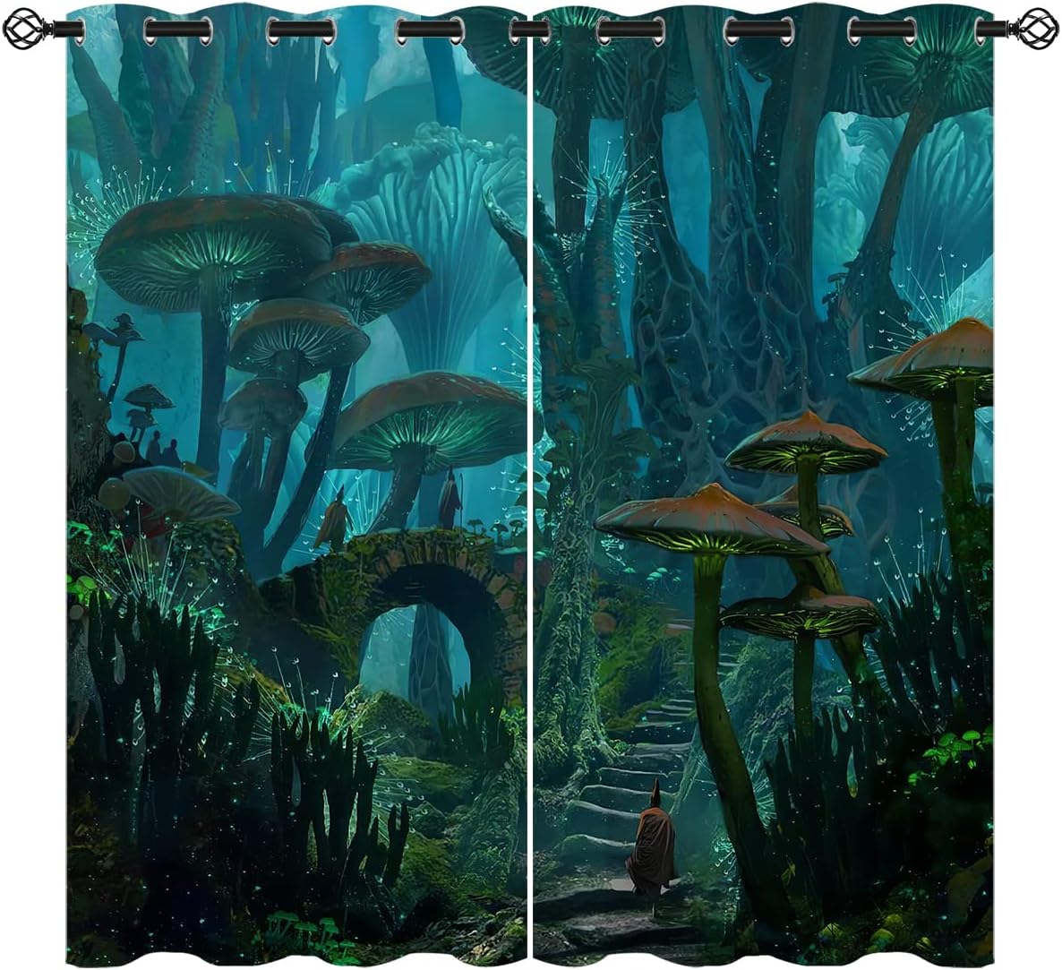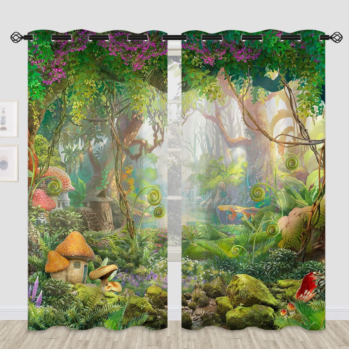 These print curtains are perfect for Living room, bedroom, kids room, kitchen, yard, patio, parlor, sliding door with Mushroom,Cartoon Fairy Tale Garden Cute Garden pattern.- Unique design:· Save energy costs by insulating against heat and cold.· Reduce noises from busy streets and high-traffic areas.· Protect furniture from sun damage and fading.· Provides complete privacy when needed· Perfect for any bedroom, office kids room and living room.- Package Included:· Blackout window curtains 2 Pcs set ( two panels).- Material:· Our Blackout Curtain Liners are crafted from a durable soft and thick triple weaved blackout fabric which can block out sunlight and UV rays. The darker color of the fabric, the more light it can block.- Easy Care Instructions:· Machine washable in cold water· Do not bleach.· tumble dry on low· low temperature ironing- Notes:· For your curtains to be more perfect, please choose a size 5-90 Inch larger than the actual window width.· here may be slight differences in colors on different displays. If you have any questions about the product, please feel free to contact us.