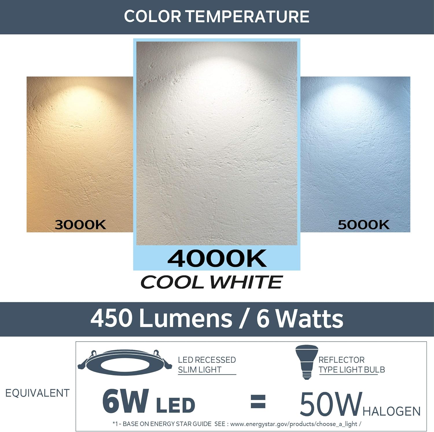| Model Name | Nadair, 3’’ LED Recessed Ultra Slim Lights, 24-Pack, IC Rated, Dimmable, 6W=50W, 450 Lumens, 4000K ( Cool White), Large Junction Box, Quick Connect System |