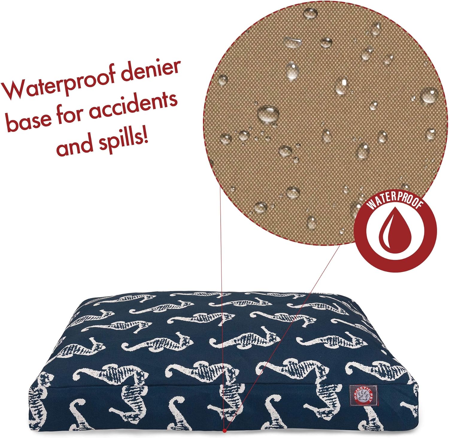 Show how much you care by giving your pet a bed that might be more comfortable than your own. The Majestic Pet Outdoor Indoor Small Rectangle Pet Bed is the perfect combination of style, function and comfort. It features a removable zippered slipcover that is woven from durable Outdoor Treated polyester, with 1000 hours of UV protection. The base of the bed is made of heavy duty waterproof 300/600 Denier fabric, which allows you to move your pet wherever you are, inside or out. Each bed is filled with a super plush fiberfill that provides ample amounts of comfort. To wash: Spot clean the slipcover with a mild detergent and hang dry. Dimensions: 27 x 20 x 4.