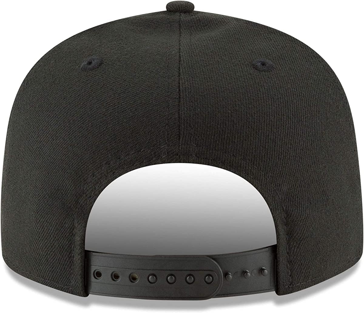 The Black & White 9FIFTY Snapback Cap is made of 100% polyester and completed with a snapback rear closure. The snapback closure allows for one size fits most sizing. White Raised Embroidery of your favorite team's logo on the front of the cap makes the Black & White 9FIFTY pop. The cap is completed with the iconic New Era Flag in white on the left side.