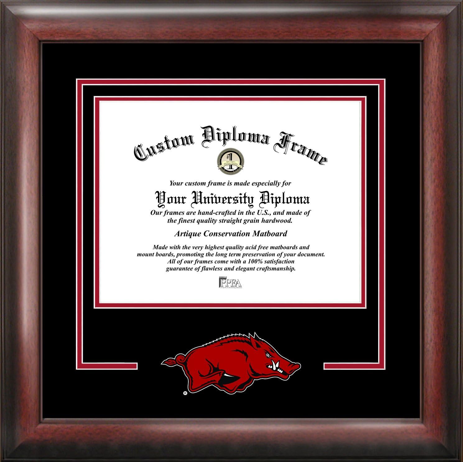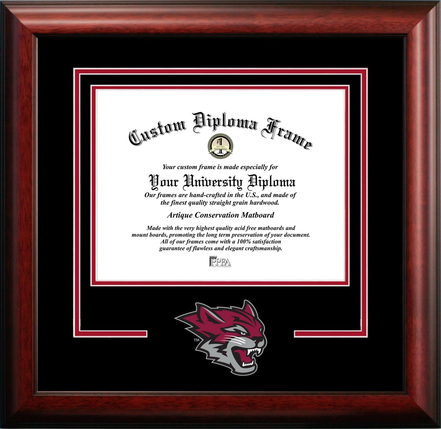 Our hand-crafted logo mats are the perfect way to showcase your school spirit! They feature laser-cut 3-D details, licensed artwork, and utilize your school colors. Time and attention to detail results in a one-of-a-kind product. A perfect way to showcase diplomas, certificates of achievement or MVP awards. Frames fit the current Bachelors diploma size of your school.