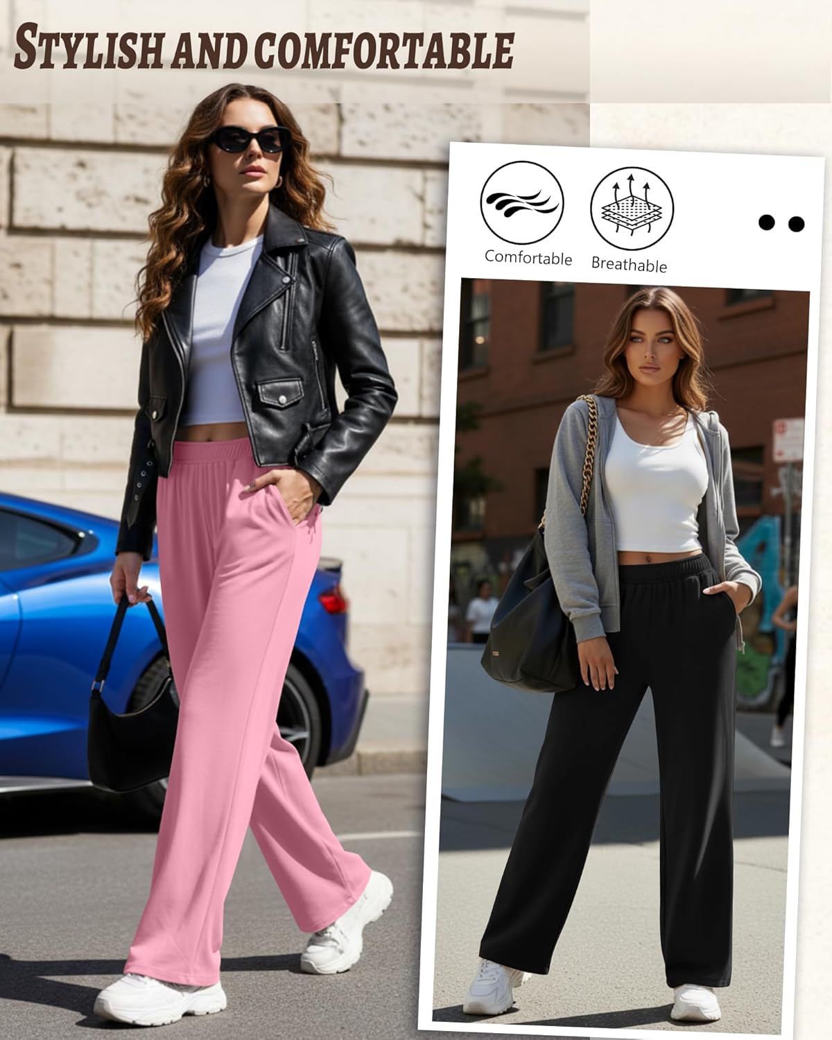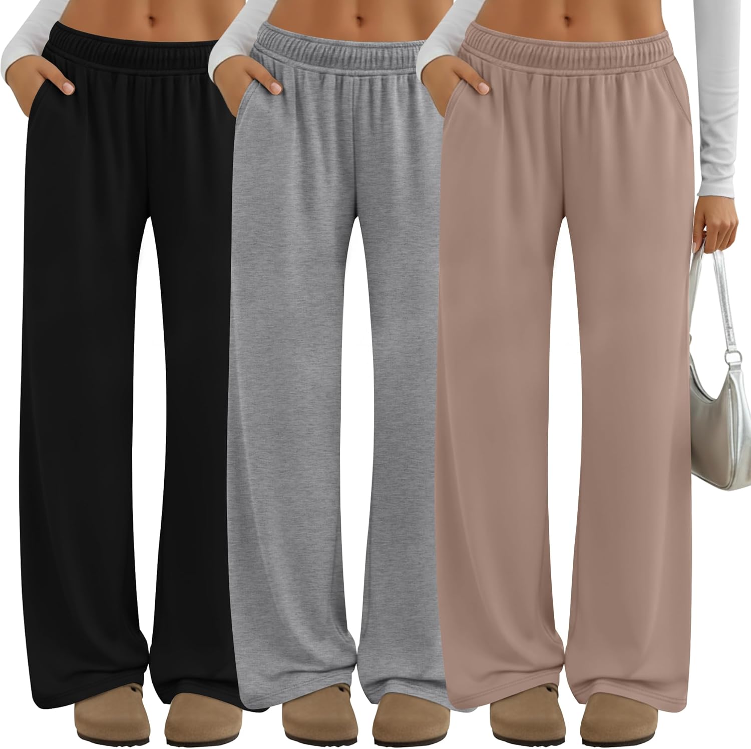Features: These wide-leg pants for women combine comfort and style. The high-waisted design not only elongates legs but also provides support around the waist, providing you with all-day comfort. The material of these women's casual yoga pants is soft and quality, ideal for lounging at home, running errands, or even dressing up casually with sneakers and various tops, suitable for all seasons. Material: 60% Polyester, 35% Cotton, 5% Spandex Package Includes: 3 x Women's Lounge Pants Notes: Manual measurement, please allow slight errors on size. The color may exist a slight difference due to different screen display