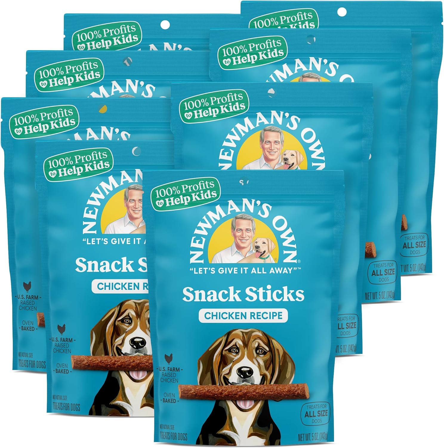 Newman’s own snack sticks for dogs are a delicious everyday dog treat. Soft, chewable sticks have U. S. Farm raised chicken as the #1 ingredient and do not contain wheat, corn or soy. Like all Newman's own products, 100% of profits go to charity. Available in two tasty varieties.