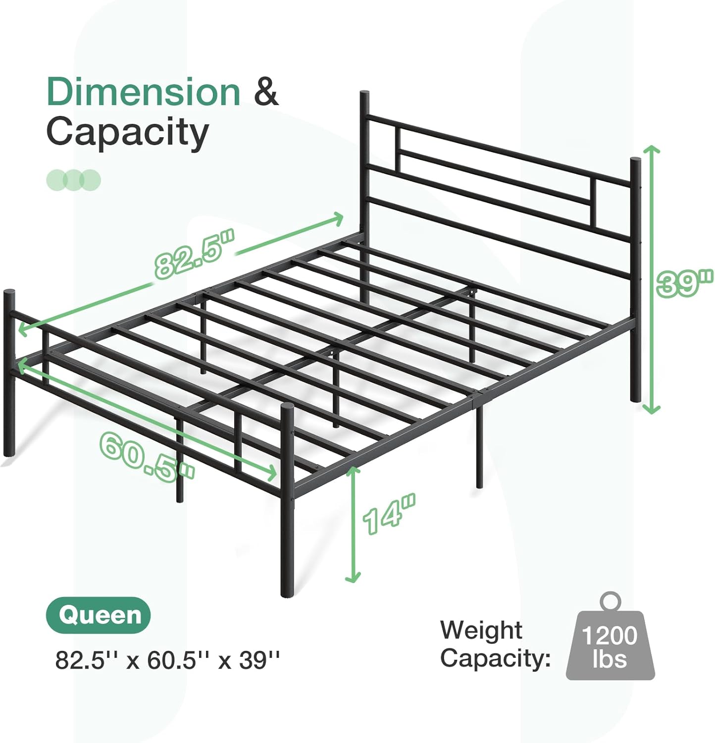 Novilla Simple Metal Bed Frame Mattress Foundation with Headboard & FootboardNovilla aims to provide a cozy and affordable home-making experience in a simple way for everyone.Dimensional Information: ●Twin: 77.5"L×39.4"W×39.4"H ● Full: 77.5"L×54.4"W×39.4"H ● Queen: 82.5"L×60.5"W×39.4"H ● King: 82.5"L×76.5"W×39.4"HMaximum Weight Capacity:Full/Queen/King: 1200LBSTips:⚠Before installing the bed frame, please read the instructions carefully to ensure that all parts and screws are firmly attached before use.