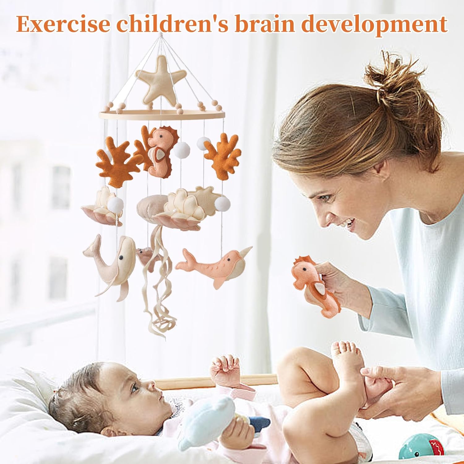 Ocean Themed Baby Crib Bell - Felt Sensory Toy for Visual & Auditory Development, Calming Nursery Decor for Newborns, Boho Neutral Gift for Baby Boys & Girls