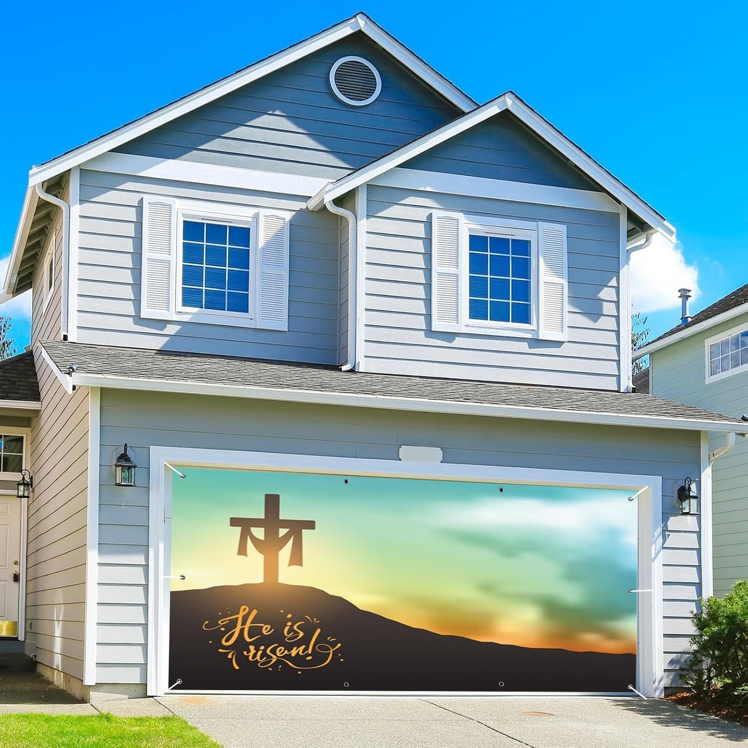 Welcome to OERJU StoreHow to hangEach garage door banner has 10 grommets and comes with 4 ropes, you need to tie the rope to a fixed place, attach to your garage door or hang it anywhere you wantHow to reduce creasesDue to post office requirements, the garage door backdrop will be sent folded, it had few wrinkles when it arrived, there are some ways to reduce creases1.Heat it with a steam iron on the back side, to avoid steam damage, place a layer of dry cloth between the backdrop and the iron2.Hang the garage door covers vertically, stretch it for 3-4 daysHow to customize1.Provide item's an image or asin or title, tell us your specific customization requirements, sizes, colors, text and images customized is available2.If you want to print your own image, please provide high-definition picturesPackage include:1 x Garage Door Banner4 x 20ft ropeWarm Tips1.Please allow slight size error due to manual measurement.2.The colors may exist slight difference due to different screen.3.Please avoid long time exposure to avoid fading