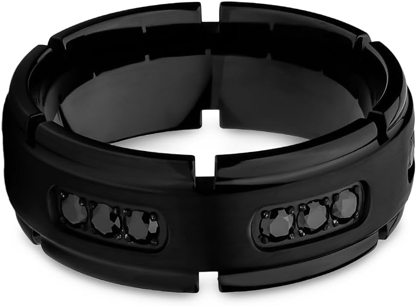 8mm Black Titanium Ring *Features* -Brushed Finish-Width-8mm -Pipe Cut -Black IP Plating -Black CZ -Comfort Fit -Lifetime Warranty-Sizes-7-15 including Half Sizes & Full Sizes -Hypoallergenic, No Cobalt-Complimentary Ring BoxTitanium MaterialTitanium is a chemical element with symbol Ti and atomic number 22. It is a lustrous transition metal with a silver color, low density, and high strength. Titanium is resistant to corrosion in sea water, aqua regia, and chlorine.