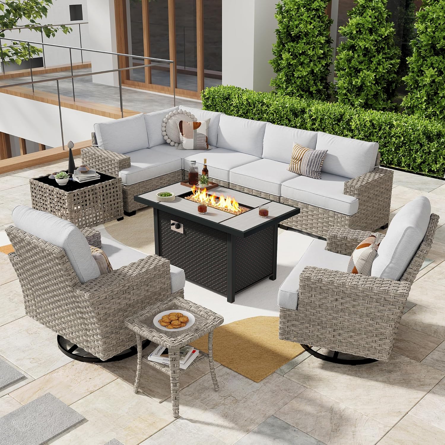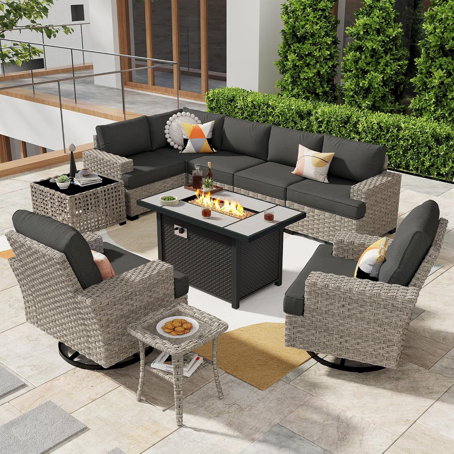 | Size | 10 PCS Fire Table & Swivel Chairs |