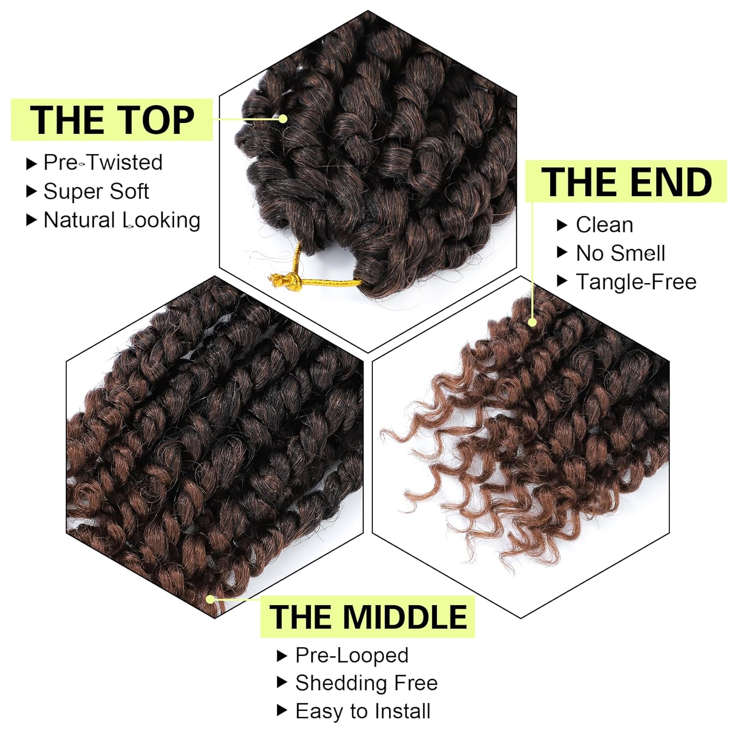 • ๐Ÿ’ซ Passion Twist Crochet Hair Material: 100% High Quality Low Temperature Synthetic Fiber, Pre Looped and Pre Twist crochet passion twist hair.