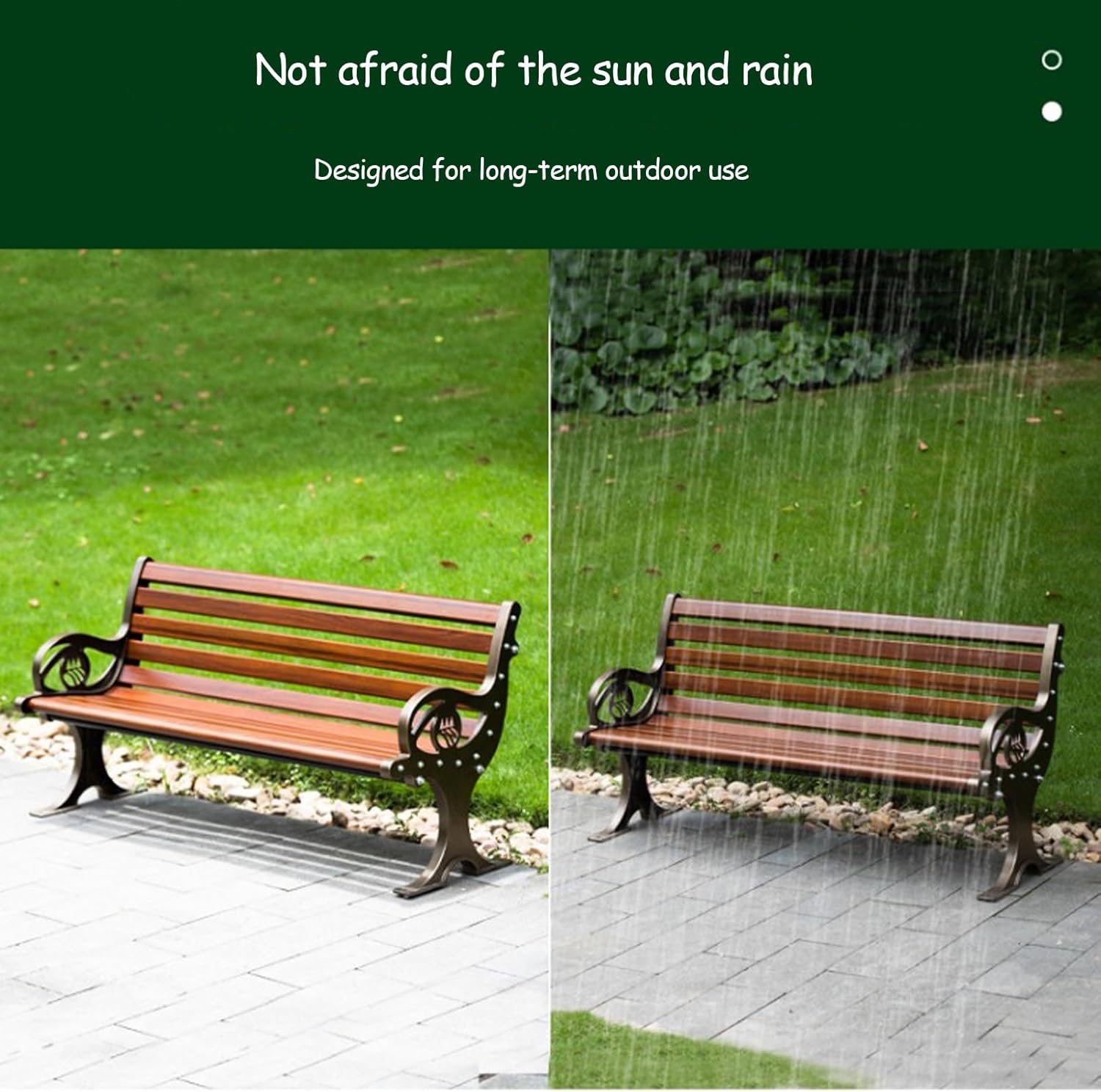 * High quality cast aluminum tripodThe surface has a metallic texture, is firm and stable and does not rust.Suitable for long-term outdoor use.* Comfortable and smooth armrestsThe curved armrest design is close-fitting and ergonomically designed.* Expansion screw fixationStable and anti-theft, reinforced with expansion screws.▶ Product descriptionChair length optional: Outdoor park chairProduct Color: Yellow , Brown , BlackProduct Size: 47.2in/120cm , 59in/150cmTripod material: cast aluminum chair legsProduct features: beautiful color, moisture-proof, rust-proof, easy to clean, etc.Applicable venues: units, city streets, parks, scenic spots, communities, squares and other public places▶ Please note:1. Due to different measurement tools and methods, there may be slight errors. View actual product.2. Product pictures may have slight color differences due to lighting or shooting angles. The actual product shall prevail.
