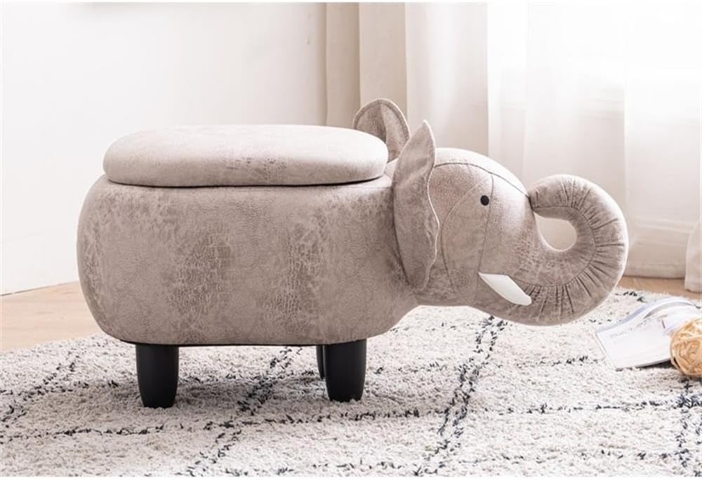 Fun, Soft and Reliable. Your Kids Will Surely Enjoy Our Unique and Colorful Elephant Stool and Storage Ottoman for the Bedroom or Playroom. 3 minute no tools assembly by hand tightening feet into body. Includes optional felt for floor protection.Features :- Material: Fabric- Finish: Gray/black- Storage compartment- Cute animal theme- No tools easy assembly- Interior storage sections included: Yes- Upholstered: Yes- Eco-friendly: Yes- Product care: Spills should be wiped up immediately- Supplier intended and approved use: Residential use- 3 minute no tools assembly by hand tightening feet into body. Includes optional felt for floor protectionSpecifications :- Product Dimensions : 15.75"H x 14.17"W x 28.74"D- Weight Capacity : (Storage Capacity) 0.29 lbs- Weight Capacity : 100 lbs- Product Dimensions : (Storage Compartment) 7.87"H x 7.48"W x 8.46"D