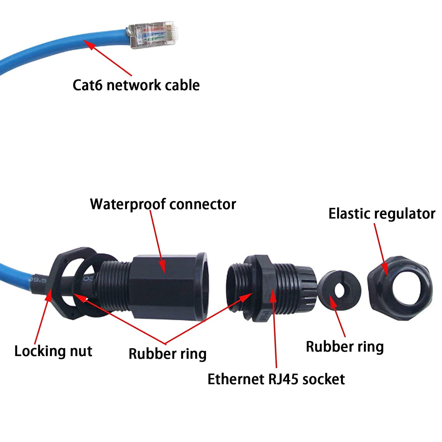 outdoor networkcable connector ethernet cable coupler waterproof ethernet connector cable pass through rj45 weatherproof connector panel mount rj45 outdoor coupler shielded cat6 ethernet cable coupler rj45 bulkhead connector waterproof ethernet connector cable pass through Cat6 waterproof connector panel mount rj45 outdoor coupler shielded rj45 connector ethernet male to femalewaterproof cat6 connector cat6 coupler outdoor rj45 waterproof connector ethernet cable coupler rj45 bulkhead connector waterproof ethernet connector cable pass through cat6 coupler Cat6 waterproof connector panel mount rj45 outdoor coupler shielded rj45 connector ethernet male to female This RJ45 network signal connector is a Male to Female Adapter (10 Pack). Using the standards based RJ45 connection system insures compatibility with existing hardware. The shielded coupler maintains the shield continuity offering protection from EMI/RFI interference. The rugged connection system provides a solution for broadband data transmission in harsh environments. Especially these connectors can apply for industrial ethernet in audio, business, amusement, live stage action, DMX lighting, industrial and outdoor in network environments. Specifications: Cable Range: Ø3-8 mm Rated Voltage/ Current: 125V/ 1.5A Durability:1000 mating cycles Waterproof Rubber Ring: silicone Flame Retardant Rating: UL94V-0 Working Temperature: -40℃~85℃ Withstand Voltage(AC.V)1min: 1000V Contacted Resistance: Less than 10mΩ Insulation Resistance: more than 500MΩ Contact Pin Gold Plating Thickness: 6u inch Socket Contact Pin: 0.5mm diameter phosphor copper wire Transmission Category: Cat6 (compatible with Cat5, cat5e) Transmission Speed: 10BASE-T, 100 BASE-T, 1000 BASE-T, 10000 BASE-T Note: Please make sure your cable diameter, cable port is right for the cable connector. Also, ensure you fully tighten the Waterproof Connector to properly seat the internal silicon ring to create a waterproof connection for that part of the assembly