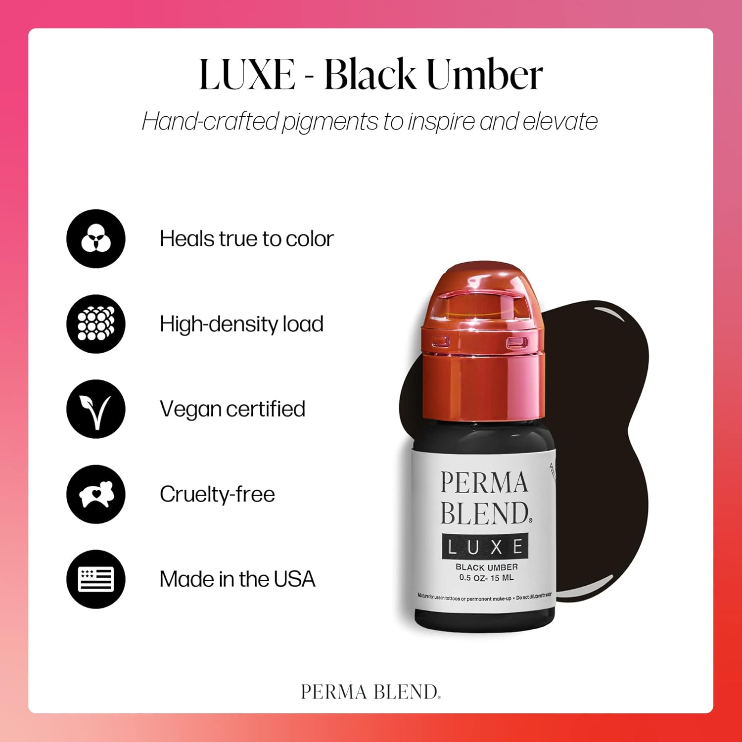 • LUXE Collection - Same Quality Ink, Different Ingredients. With new REACH regulations, we set out to create a new line of compliant products under the same rigorous high-quality standards you expect from Perma Blend. We are proud to say that all our makeup kit & tattoo supplies are 100% certified vegan and we never test on animals. Safety, quality, and simplicity - that's how we create our tattoo ink.