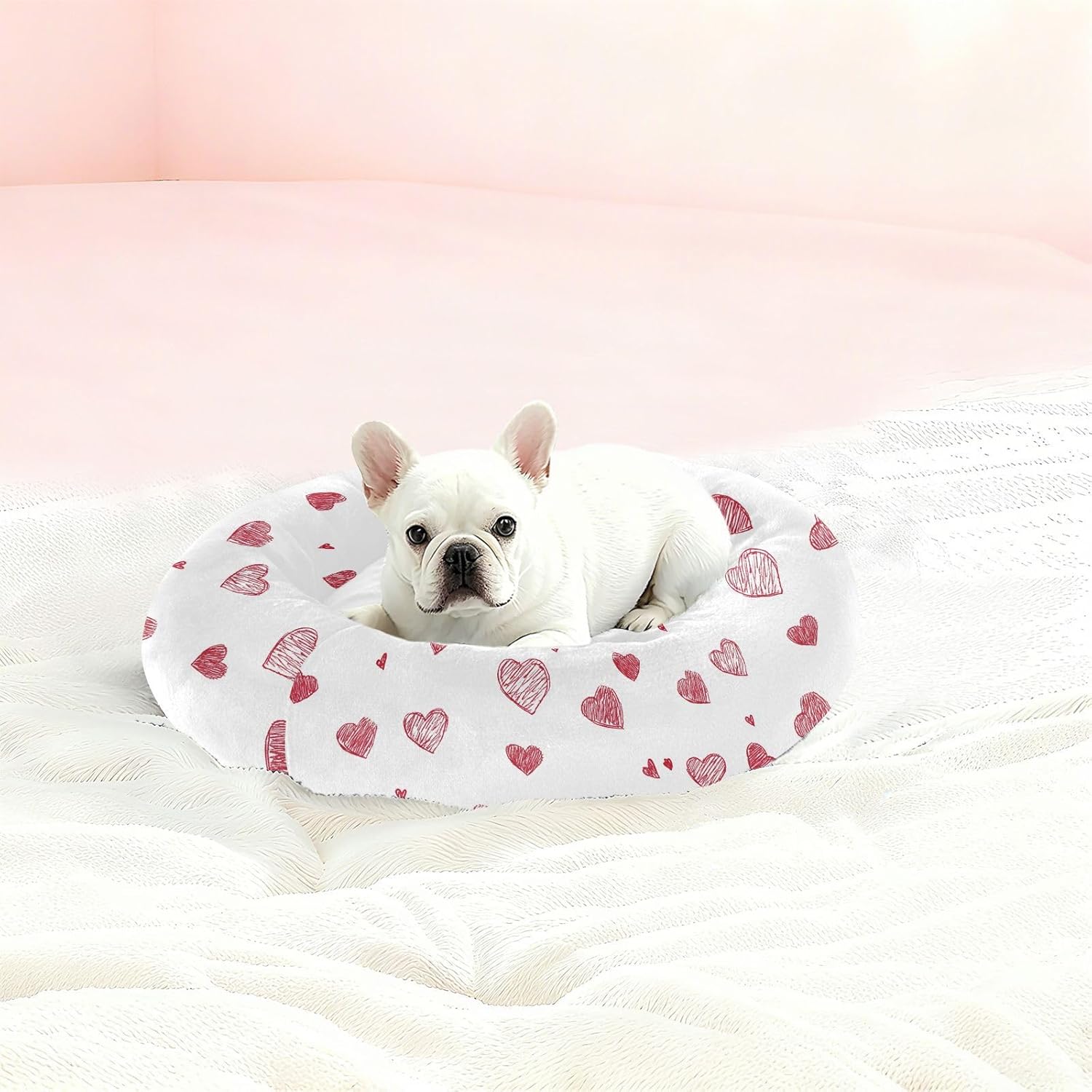 Material: Polyester + Filled Fiber + Drip Plastic. Our Dog Pillow Bed is designed in a donut style and made of soft plush fabric, which has a fine and smooth touch and can bring a warm and comfortable feeling to pets.Product Design: The overall shape is circular with raised edges, allowing your dog and cat to curl up for fun. Dog Pillow Bed provides support for the head and neck, promoting a sense of security without worry.Applicable Scenarios: This comfortable bed can be used by pets such as cats and dogs. Dog Pillow Bed can be used in scenarios such as living rooms, floors, sofas, cages, and cars.Washing Instructions: Hand wash or machine wash. Air dry in the shade. Please use a mild neutral detergent.