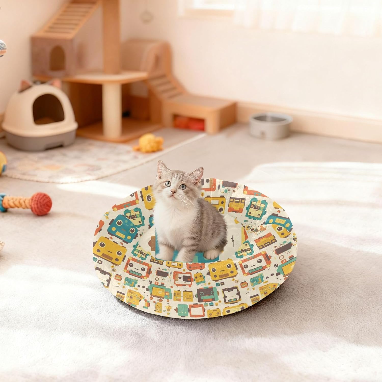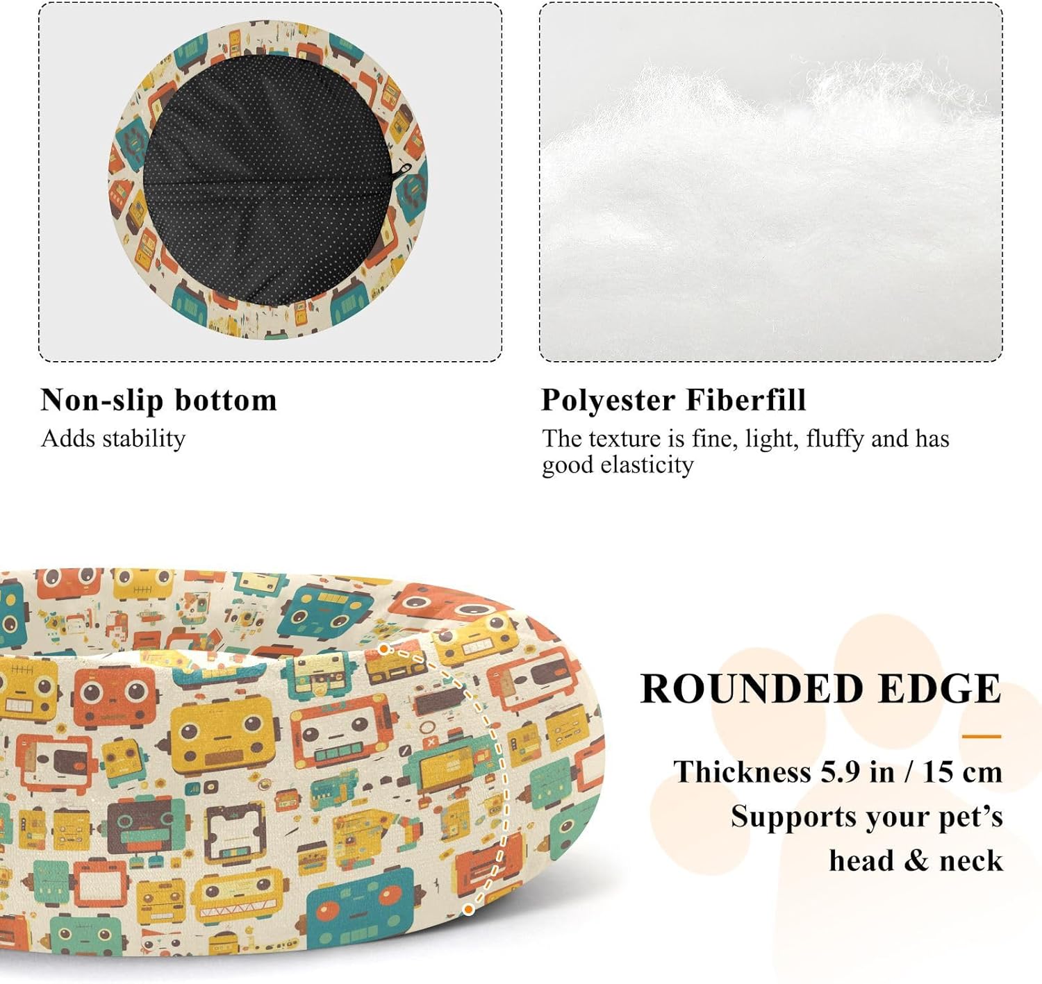 Thermal Insulation Material: Polyester + Filled Fiber + Drip Plastic. Our Cat Pillow Bed is made of plush material, which has good warmth retention and is suitable for use in autumn and winter, allowing pets to keep warm. Doughnut style.Product Design: The overall shape is circular with raised edges, allowing your dog and cat to curl up for fun. Cat Pillow Bed provides support for the head and neck, promoting a sense of security without worry.Applicable Scenarios: This comfortable bed cat can be used by small pets such as cats, dogs, rabbits and hedgehogs. Our Cat Pillow Bed is very convenient to carry and place both indoors and outdoors, as well as during travel.Easy To Clean: This Cat Pillow Bed is also designed with a detachable and washable structure, making it convenient for pet owners to clean it regularly and keep the bed clean and hygienic, which is beneficial to the health of their pets.